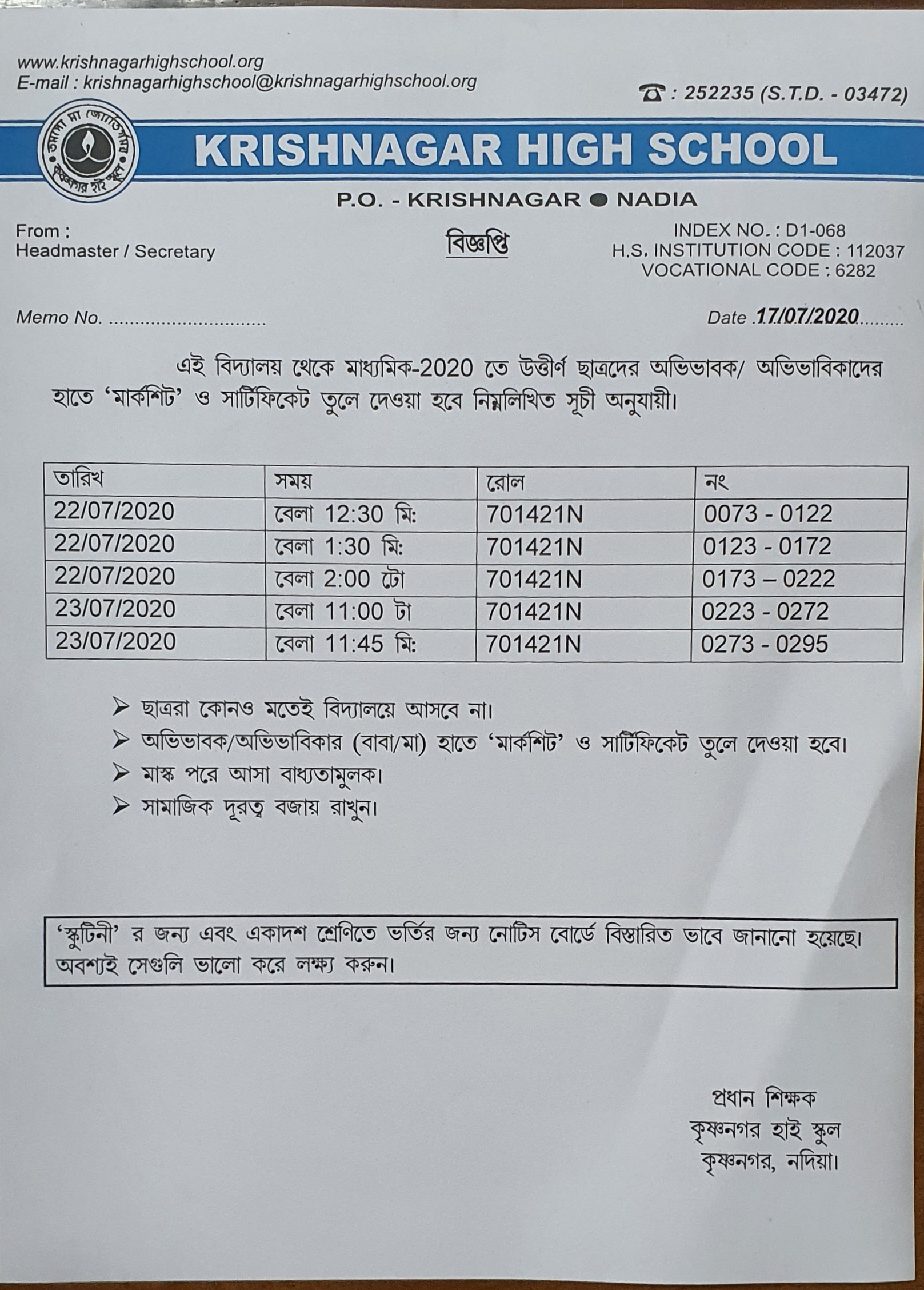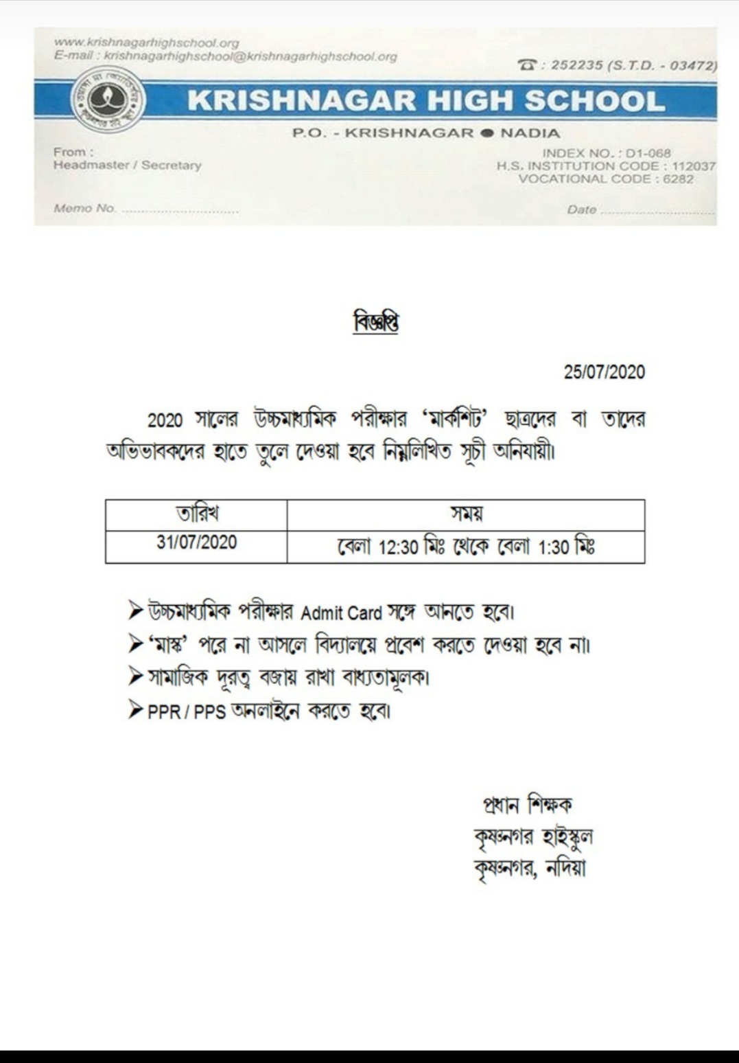 | 99 | 07/25/2020 | Distribution of Marksheets : HS |