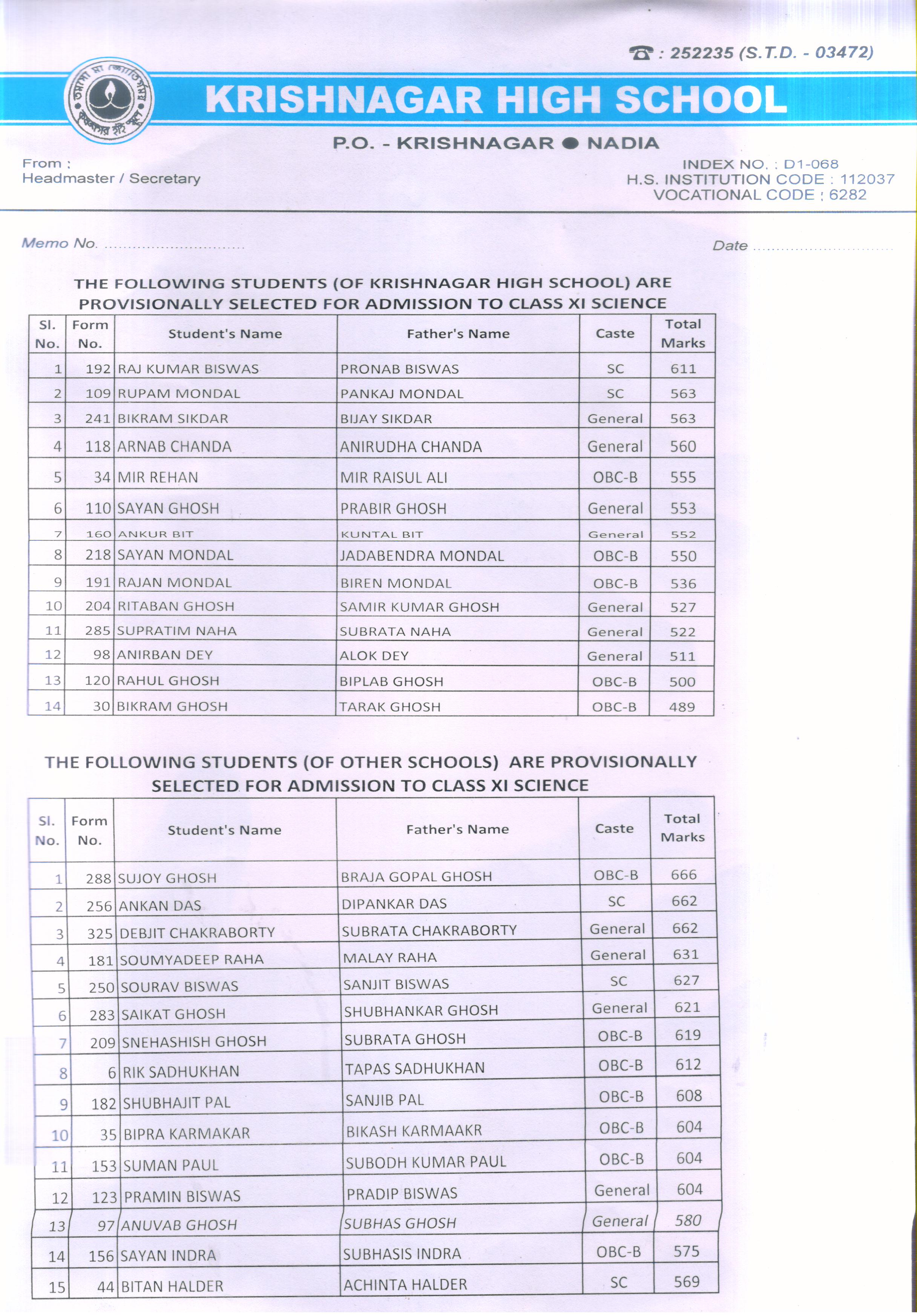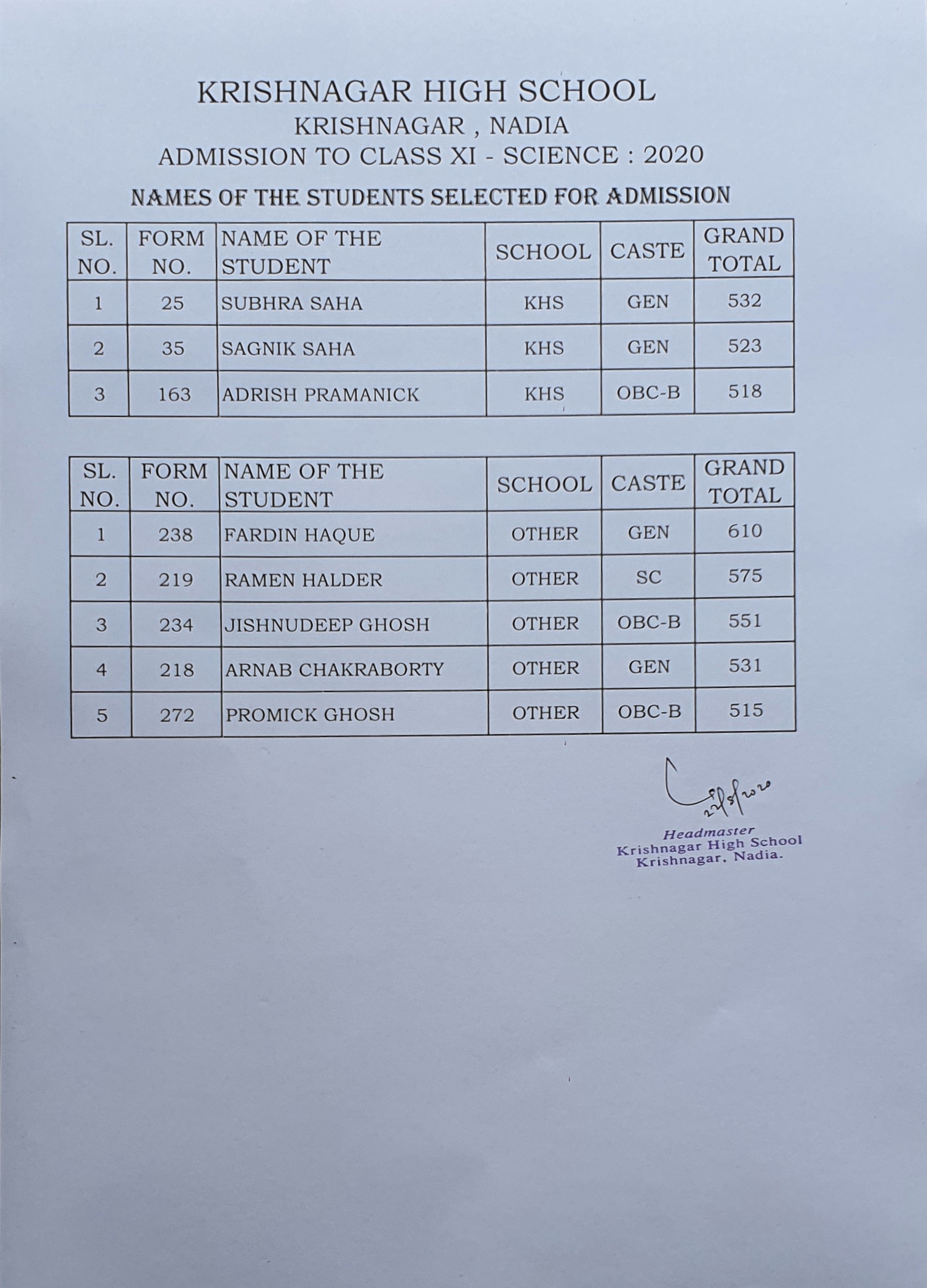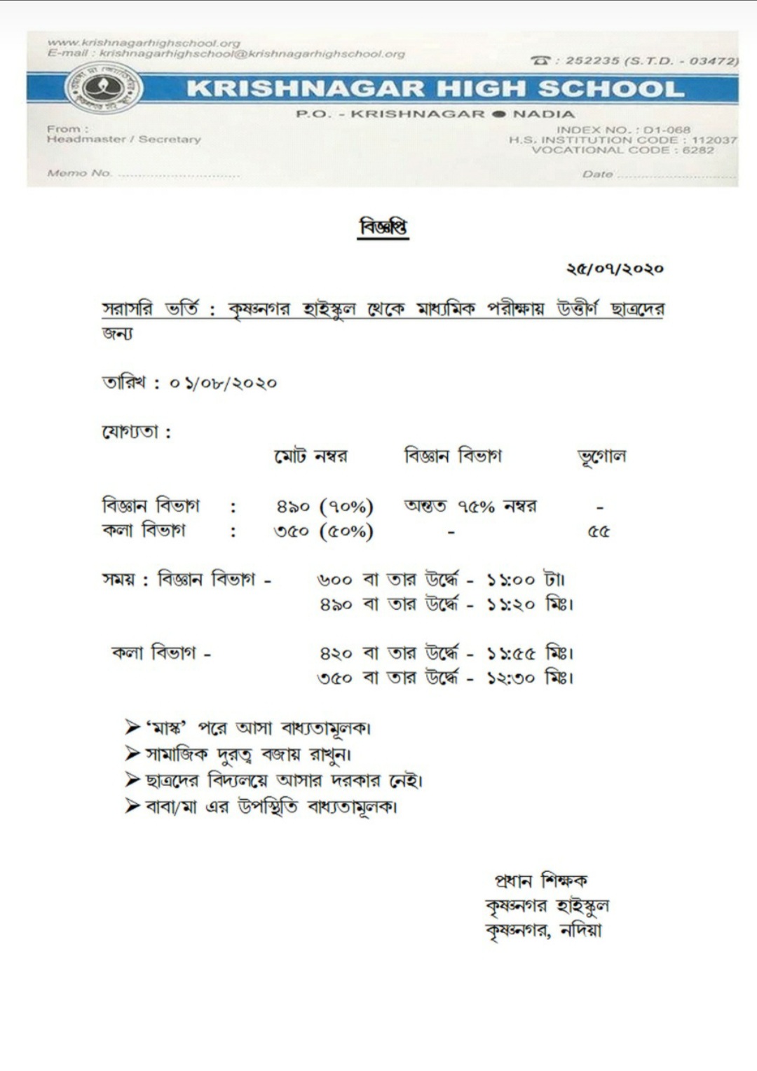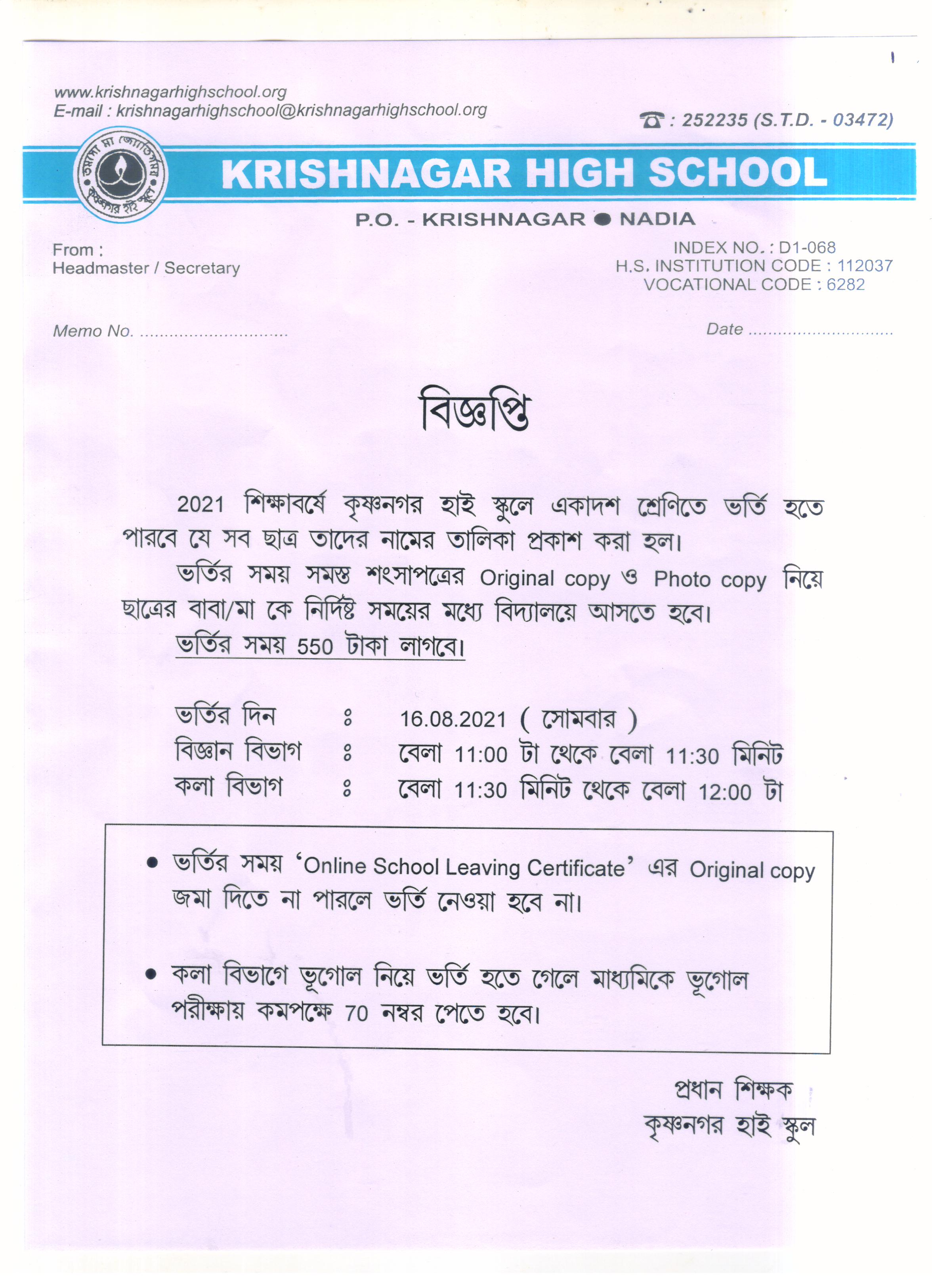 | 78 | 08/07/2021 | Admission to Class XI Science 2021 |