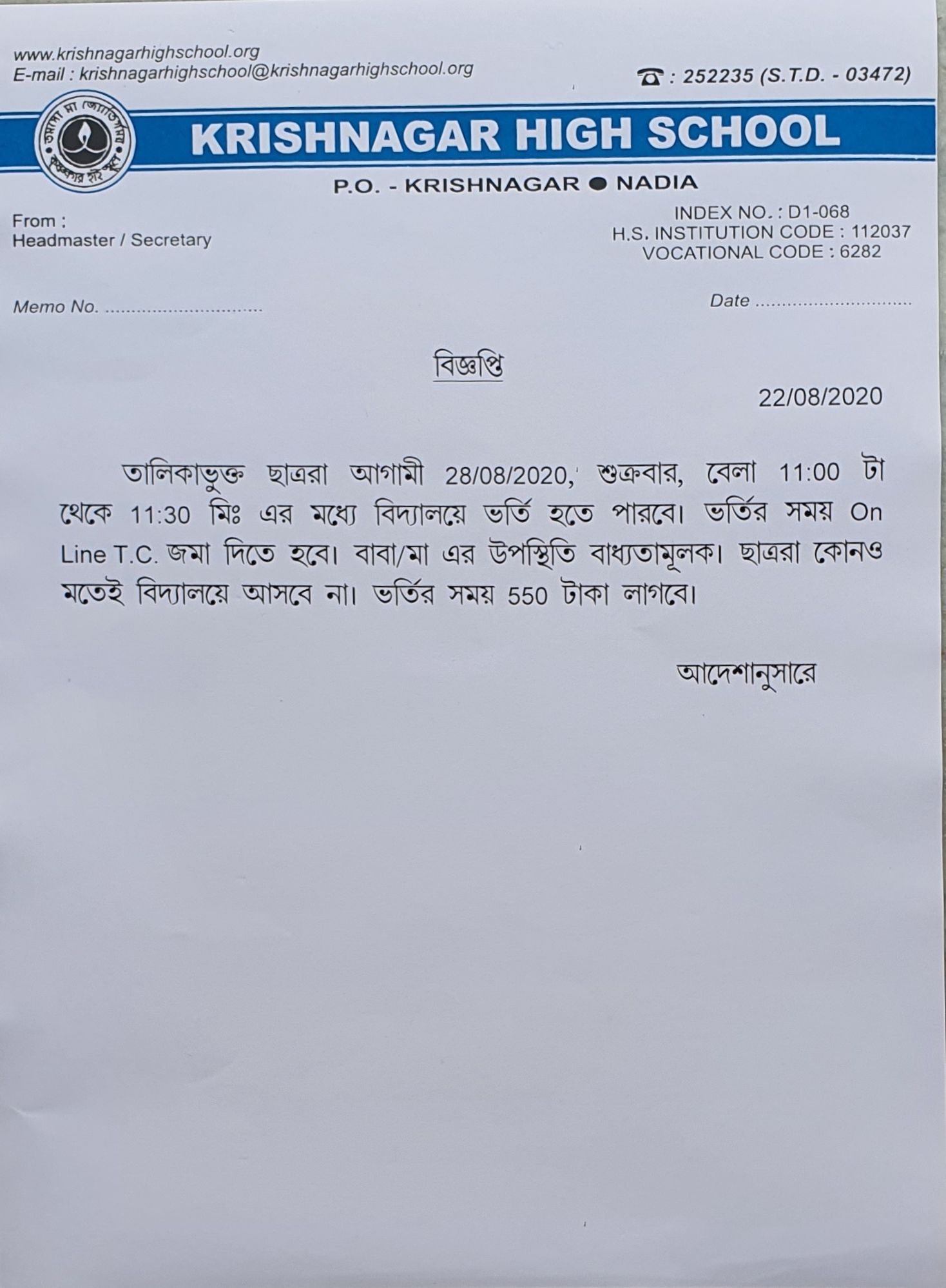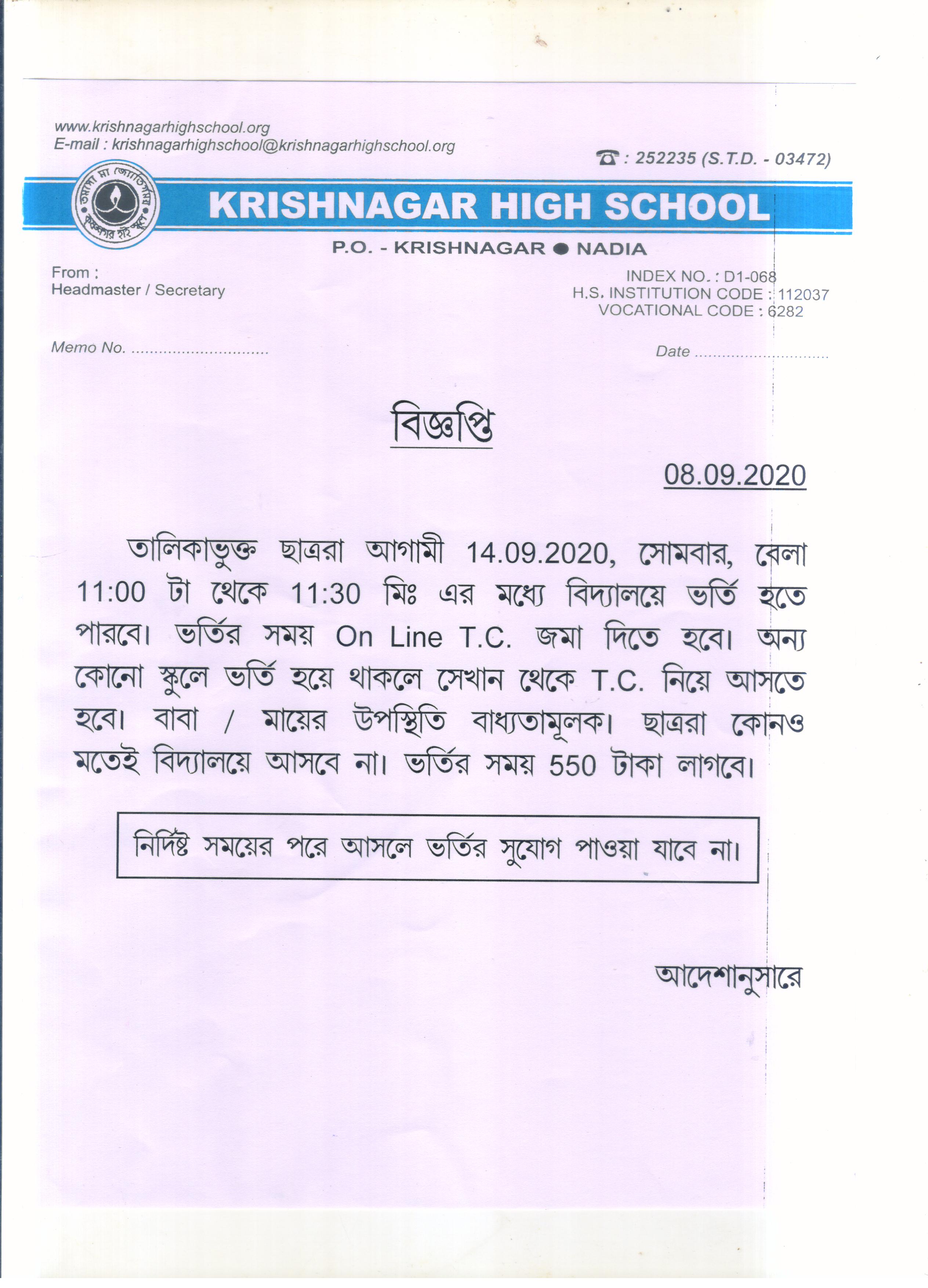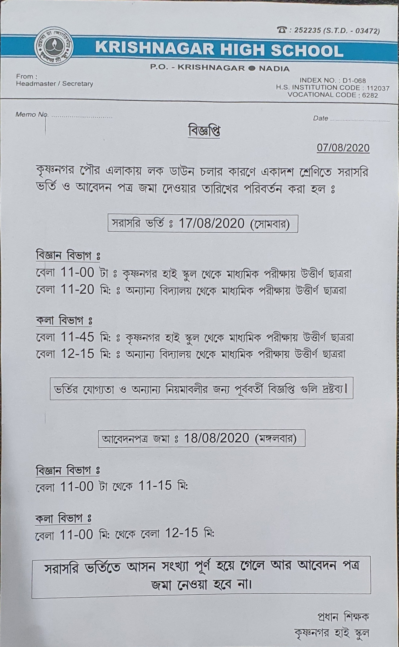 | 91 | 09/08/2020 | Notice for XI Admission |