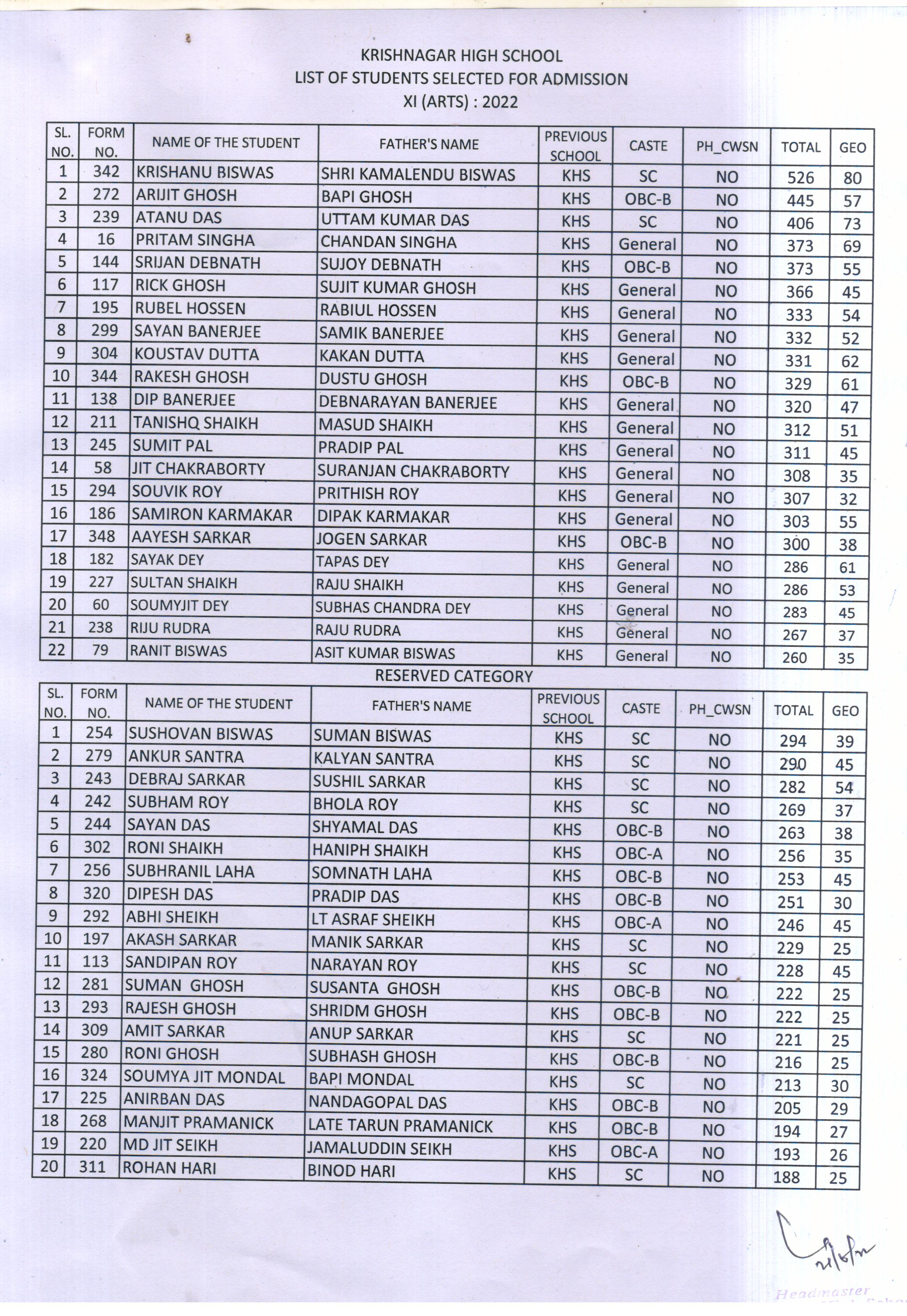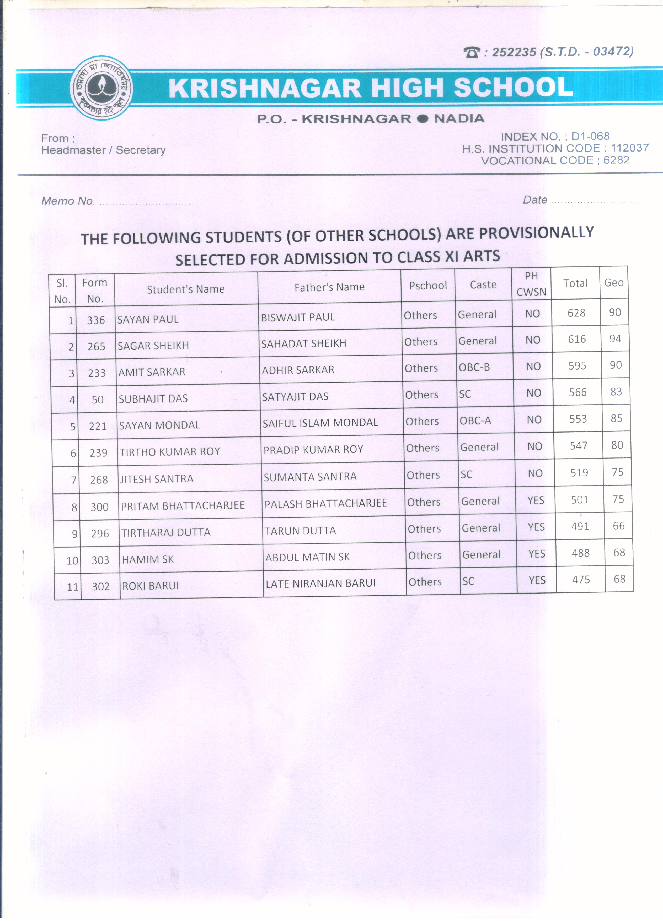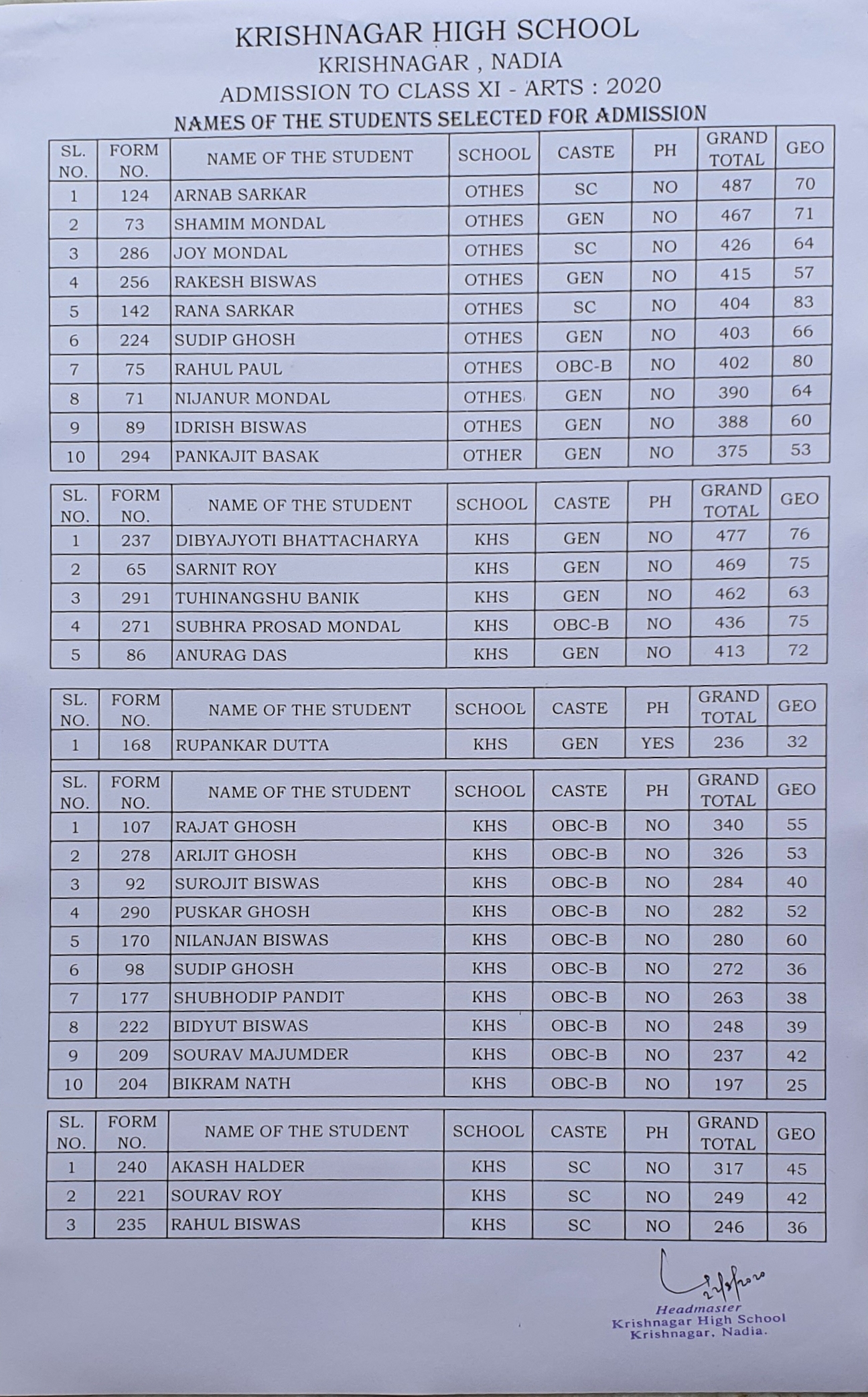 | 75 | 08/07/2021 | Admission in Class XI Arts 2021 (KHS) |