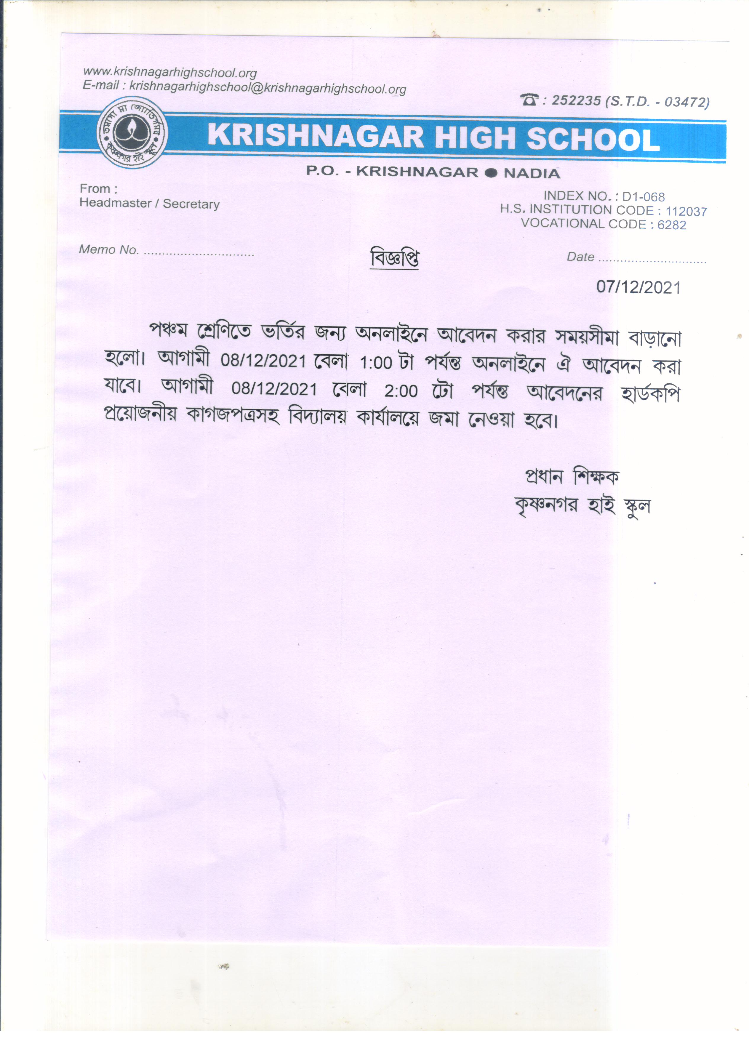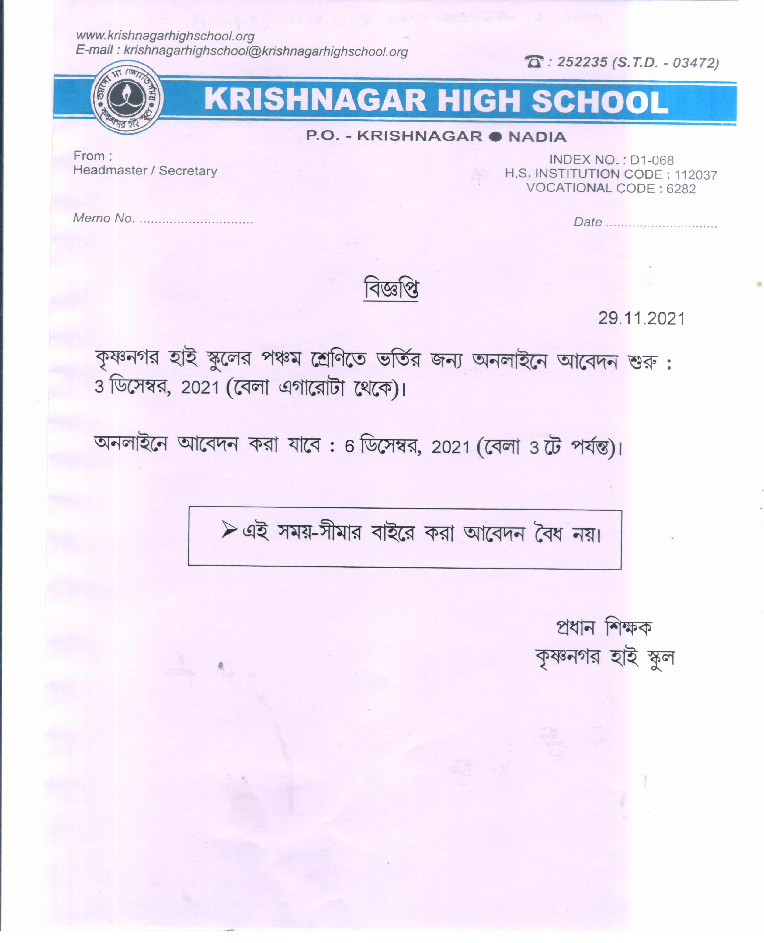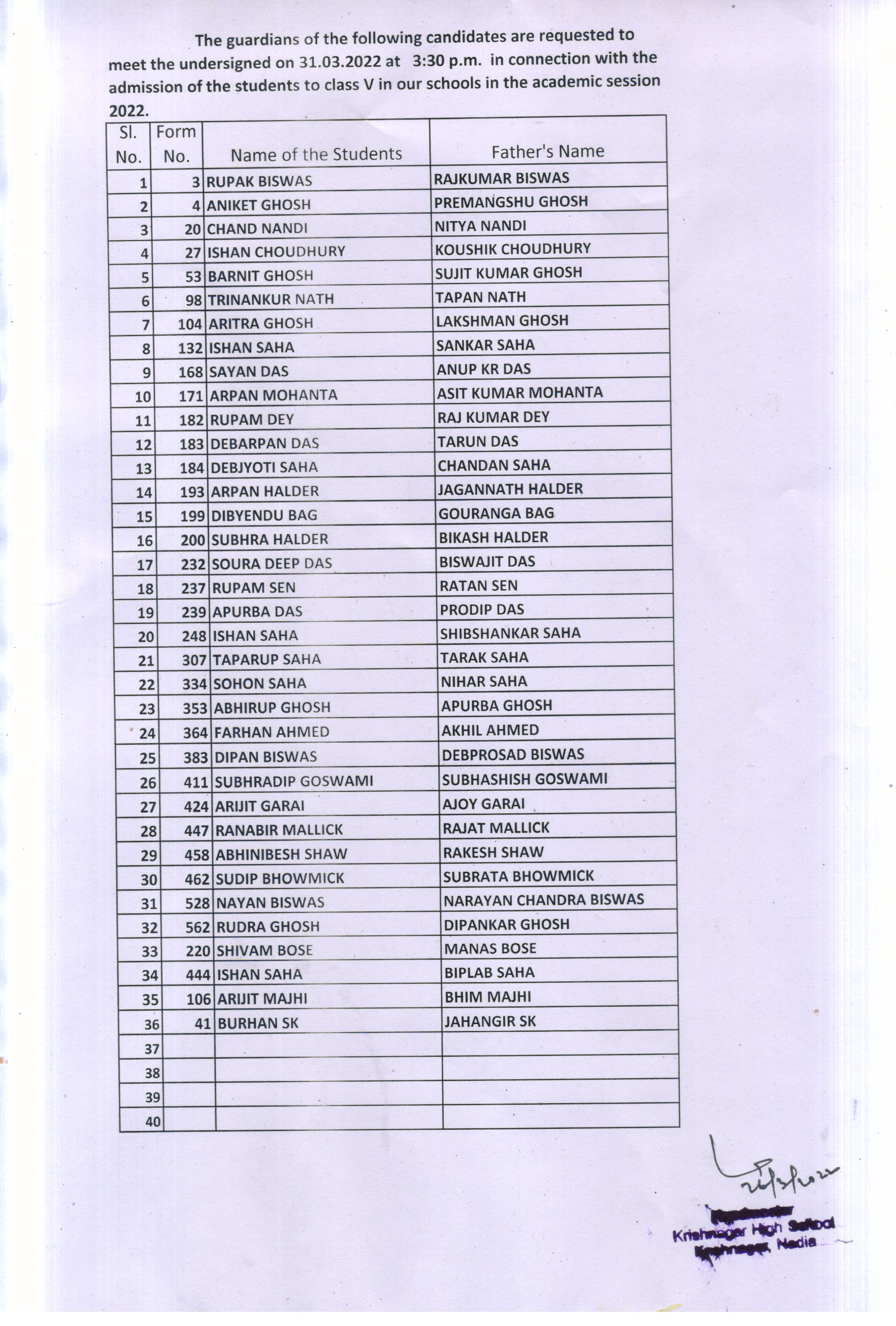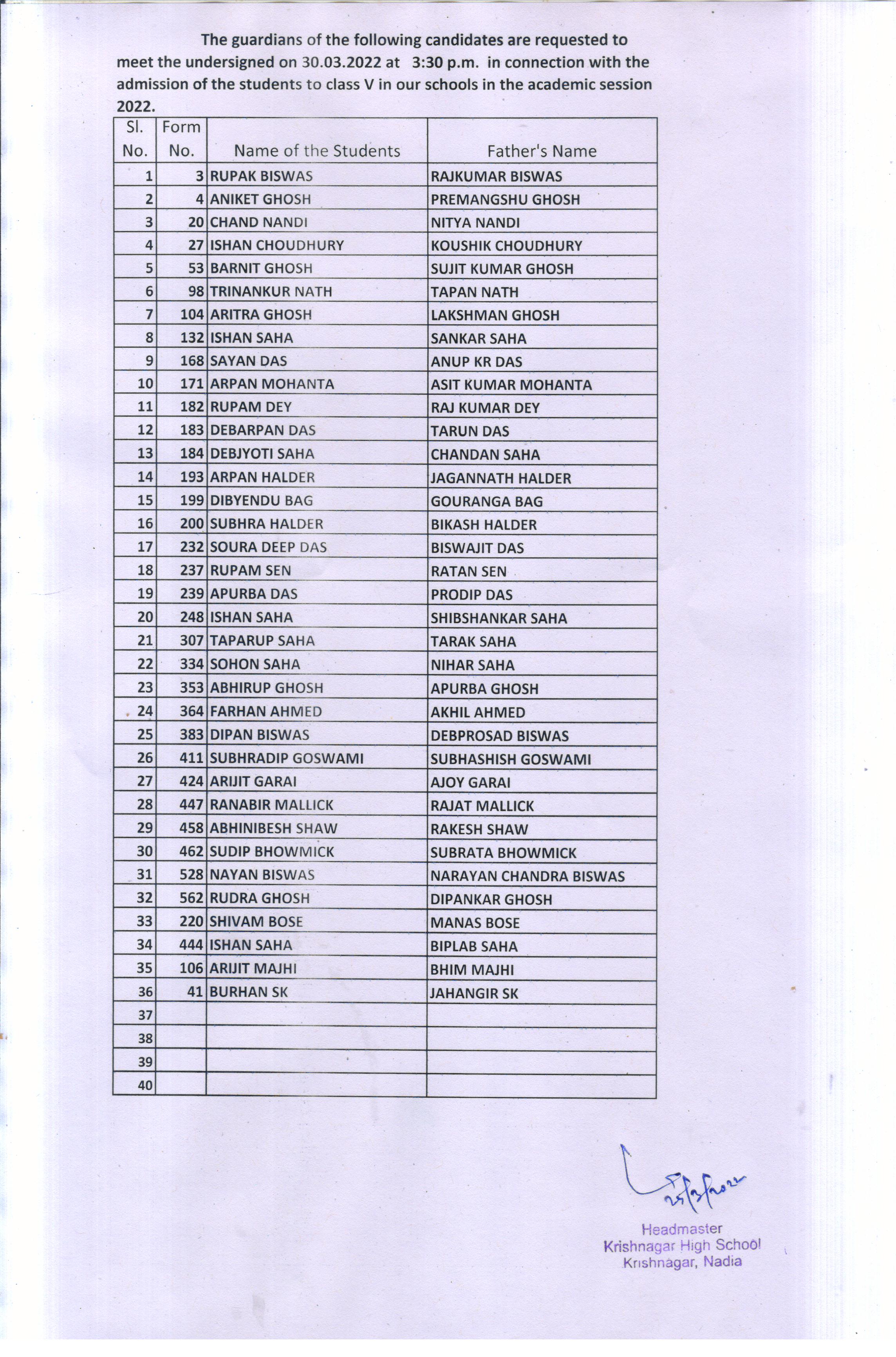 | 72 | 11/09/2021 | Admission to Class V 2022 |