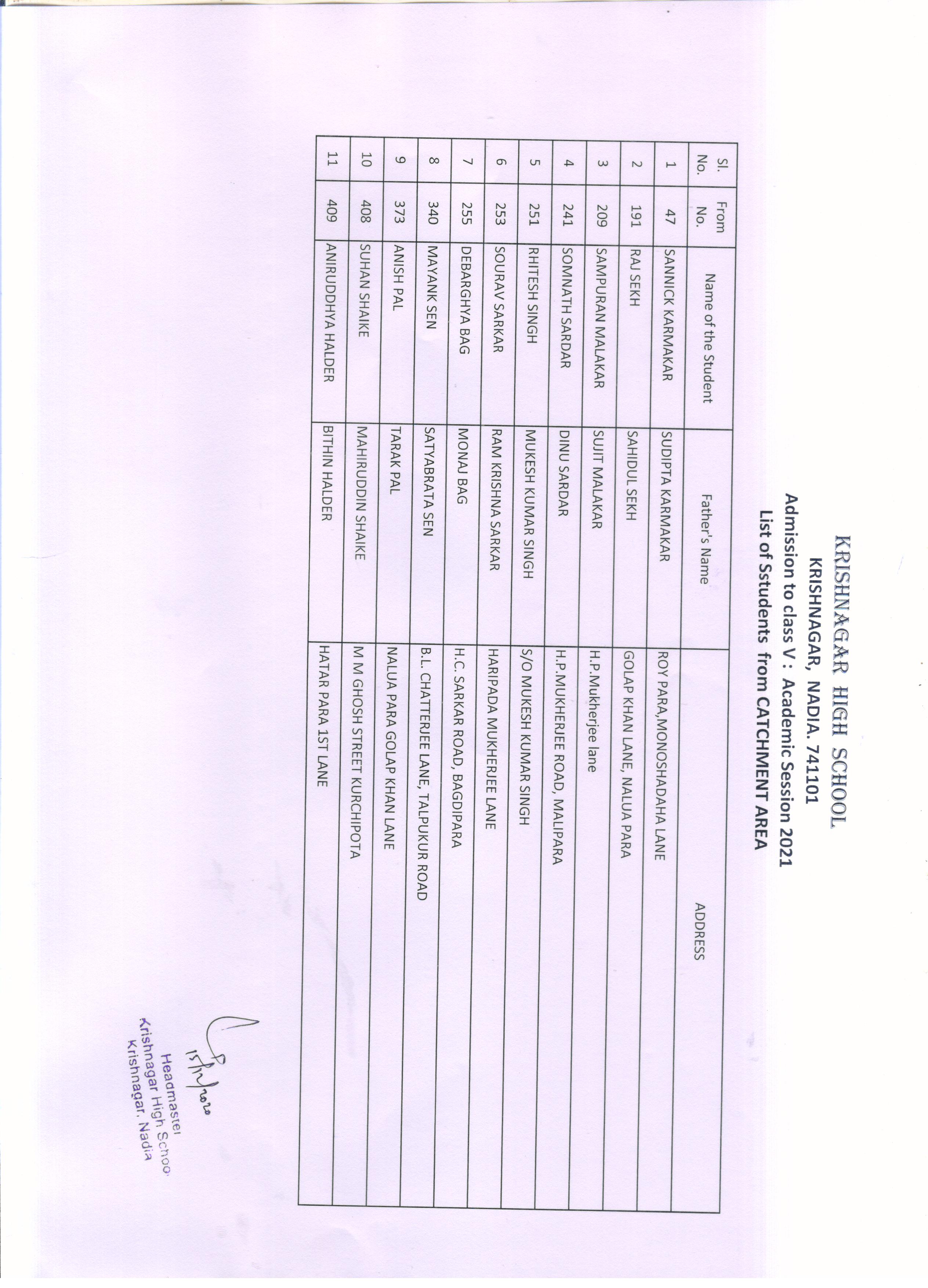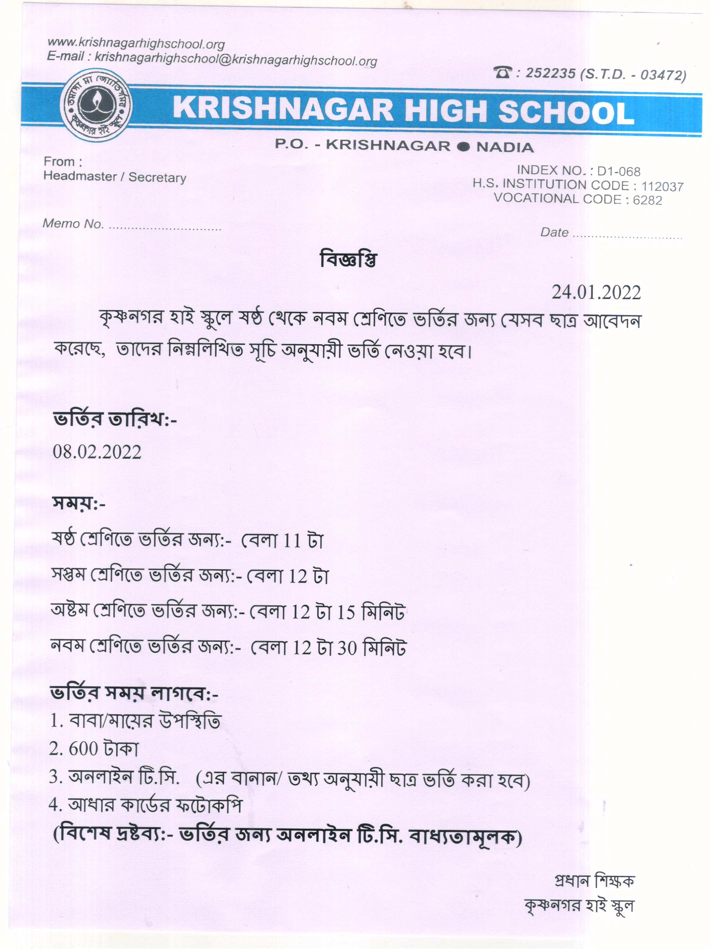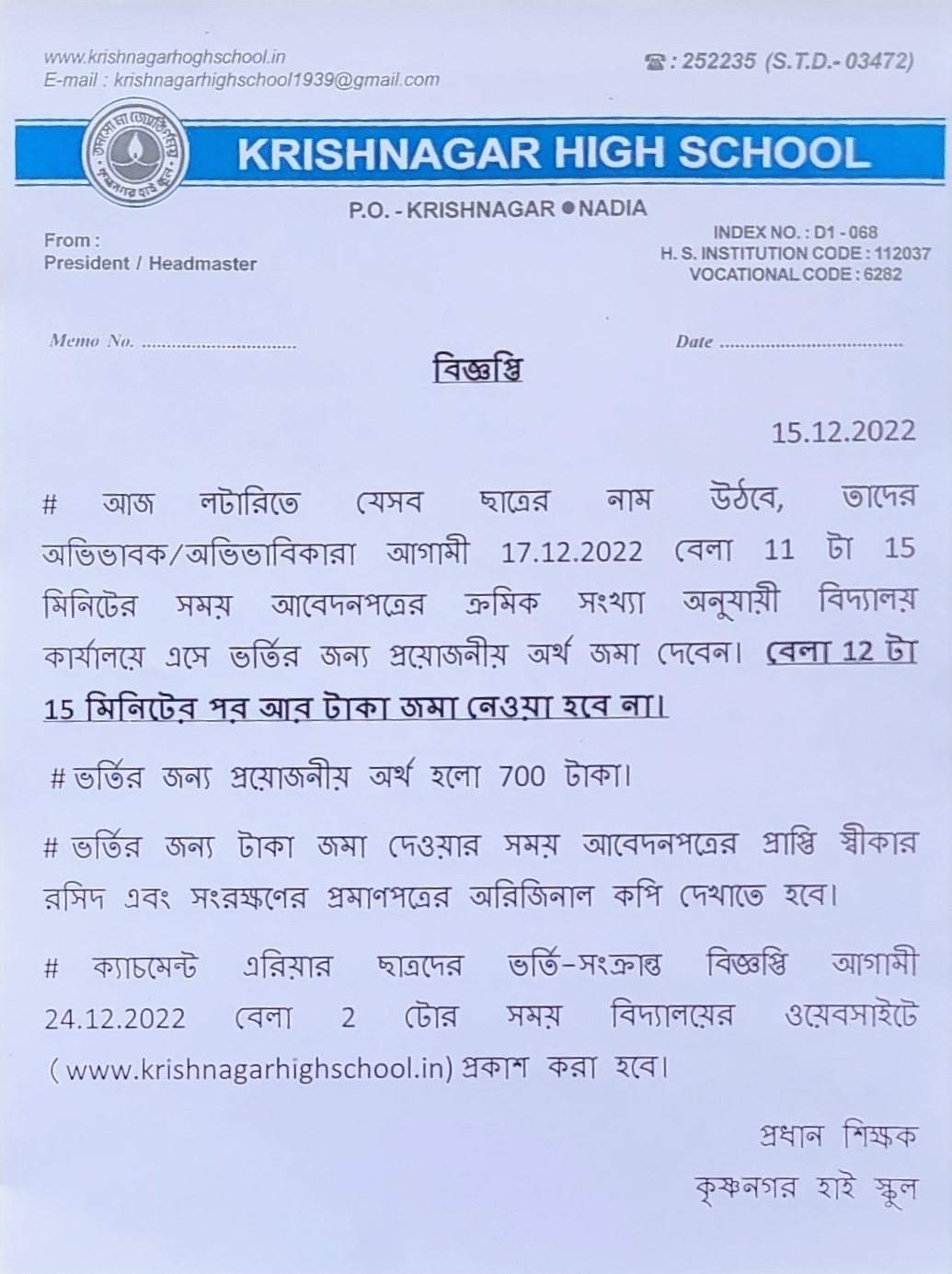 | 72 | 11/09/2021 | Admission to Class V 2022 |