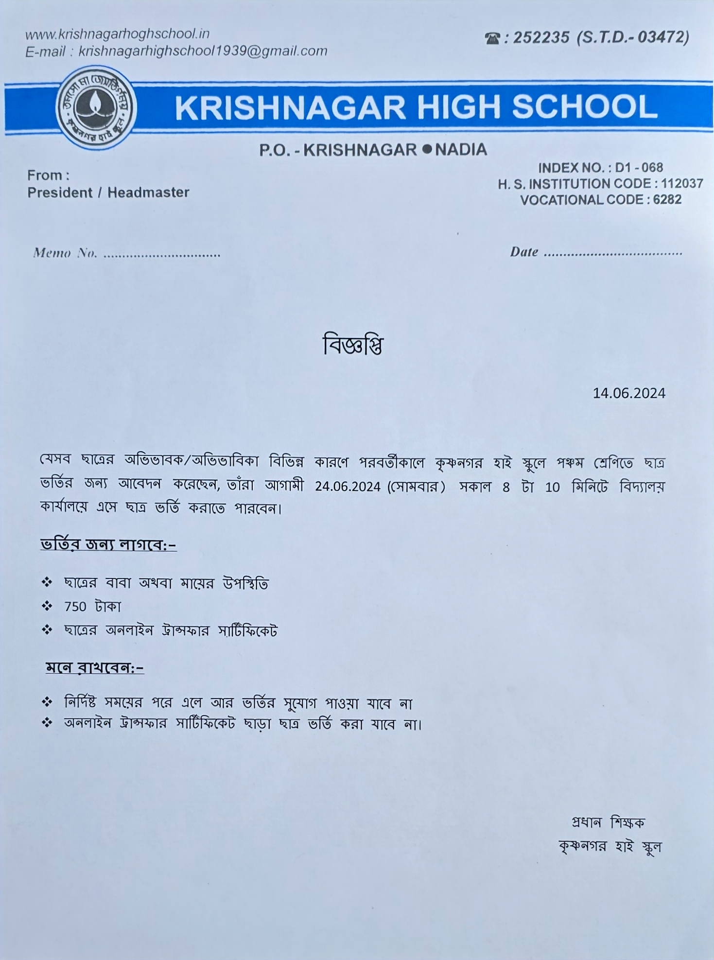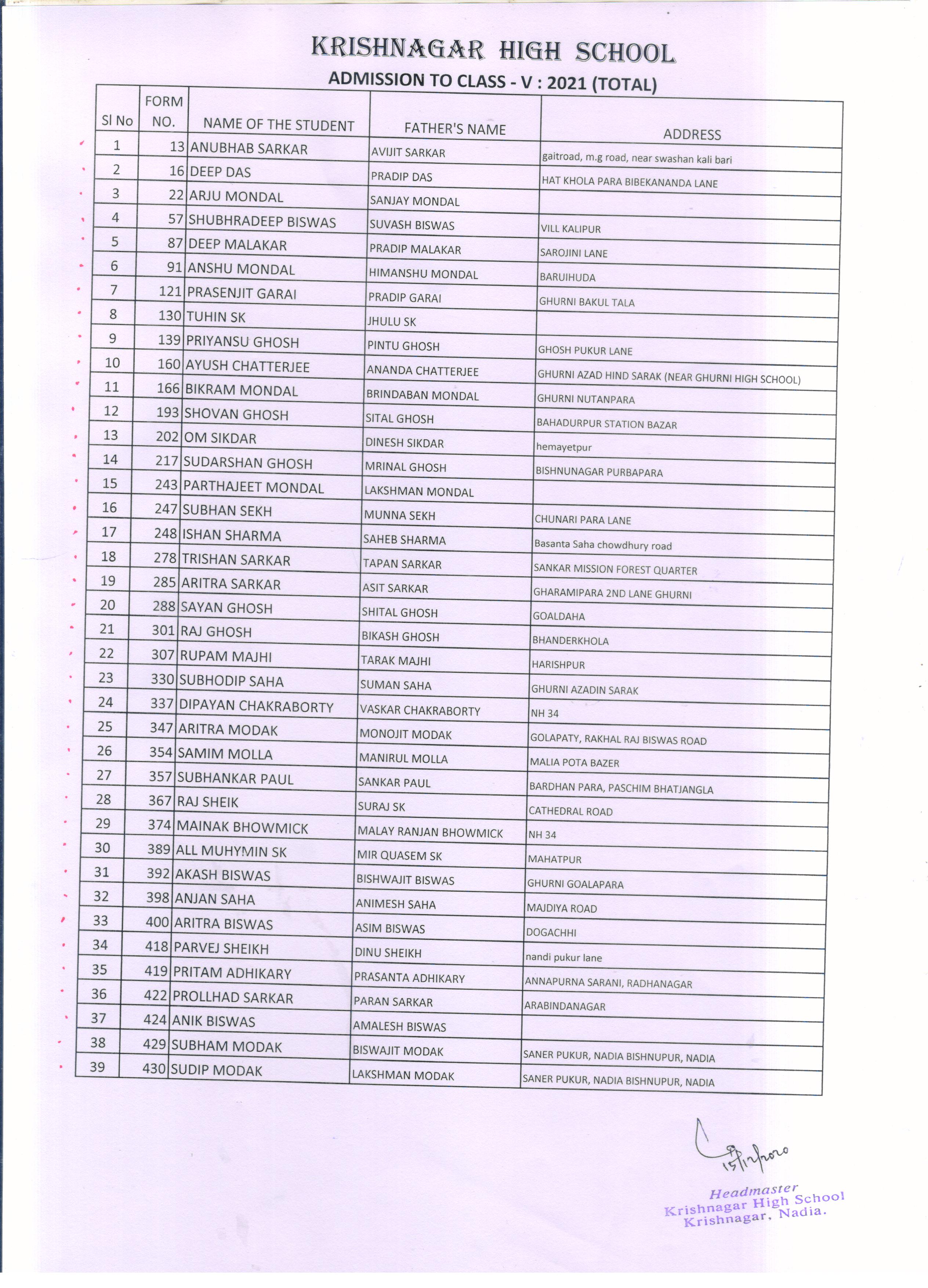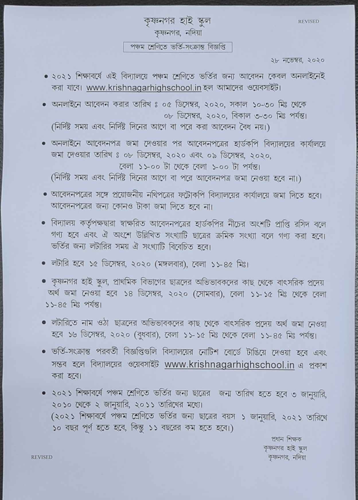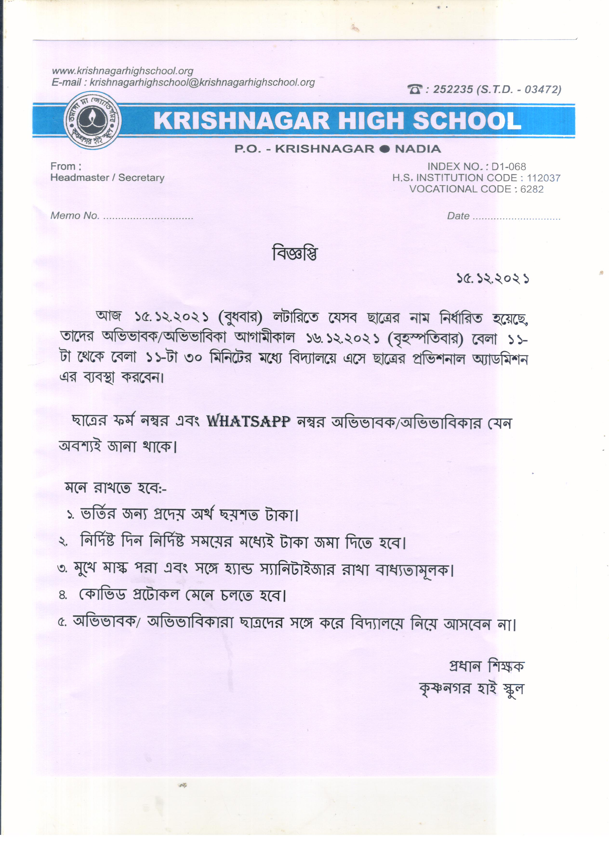 | 72 | 11/09/2021 | Admission to Class V 2022 |