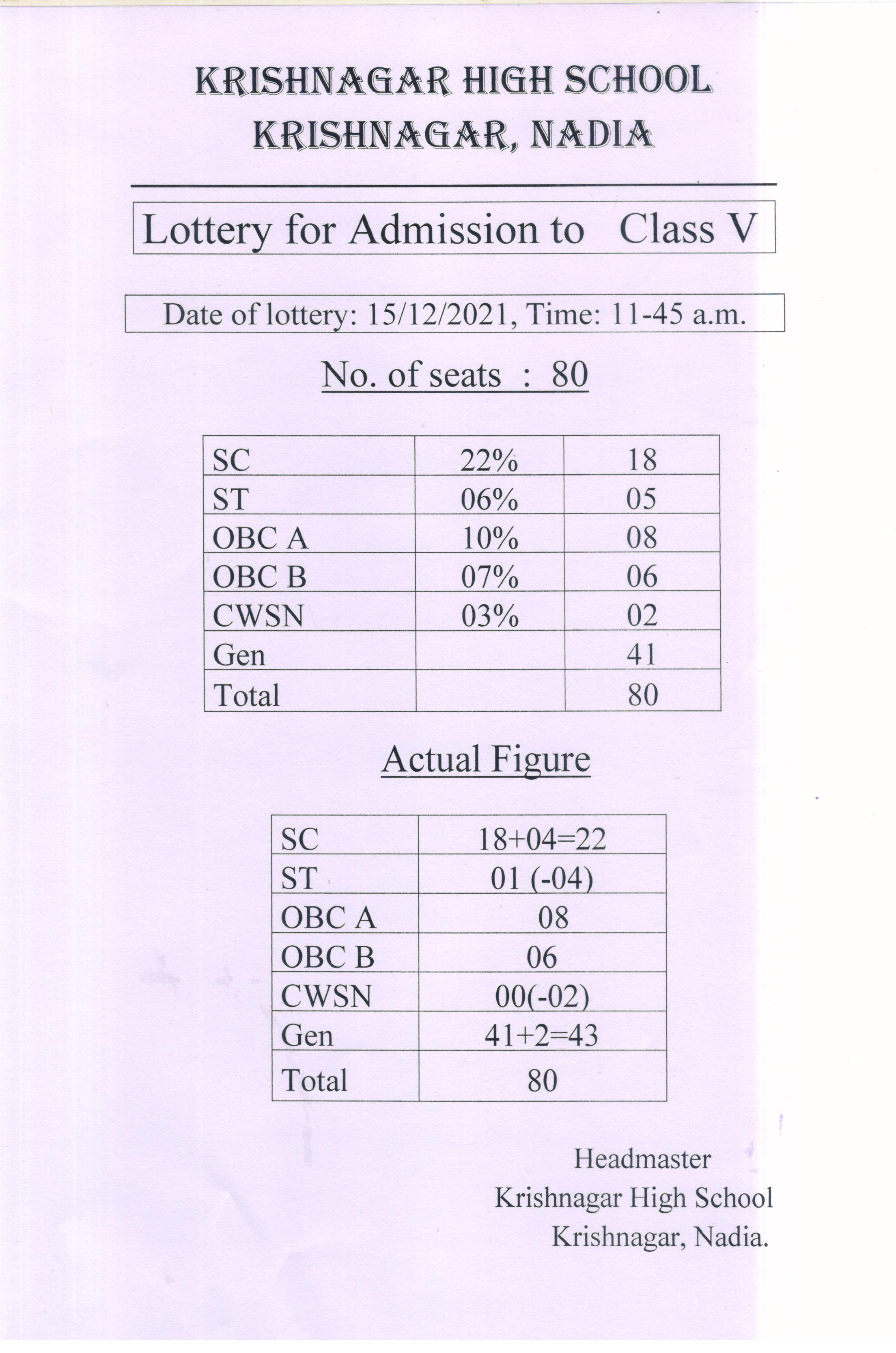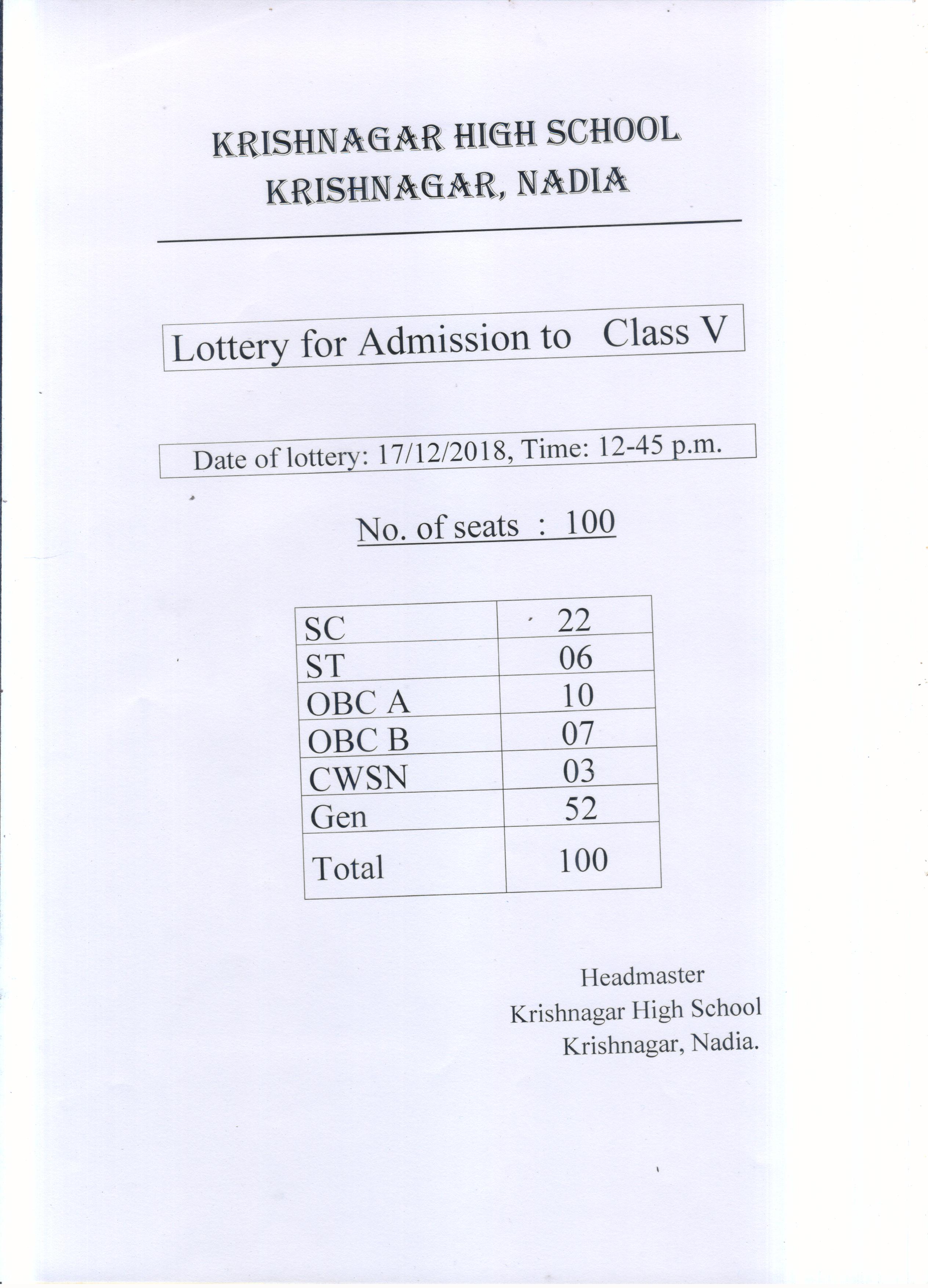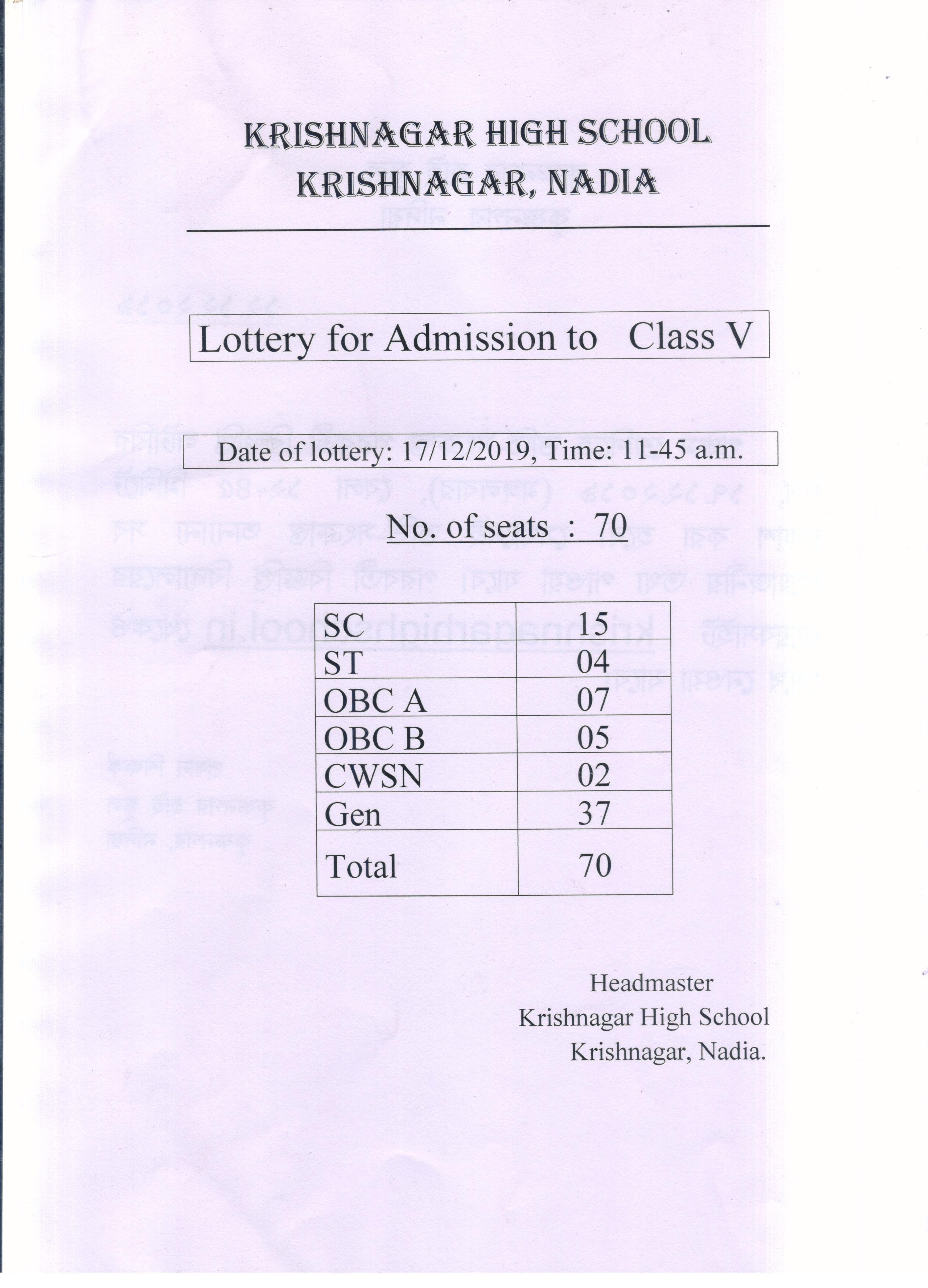 | 111 | 12/17/2019 | LOTTERY FOR ADMISSION TO CLASS V - General Category |