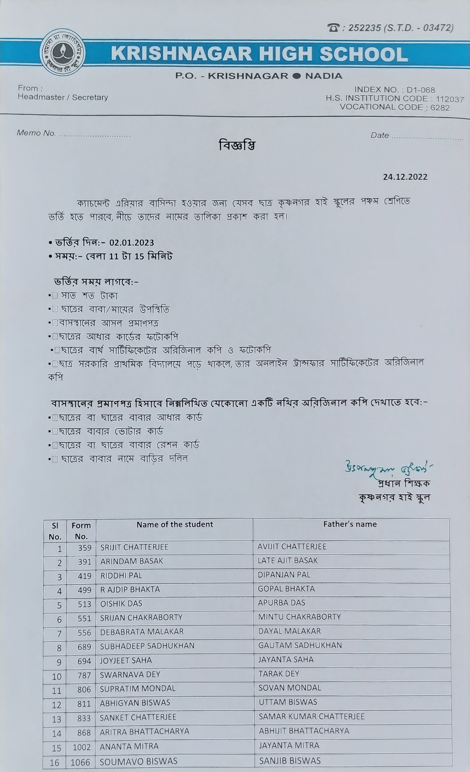 | 32 | 04/27/2023 | Admission Notice (Class V) 2022 |