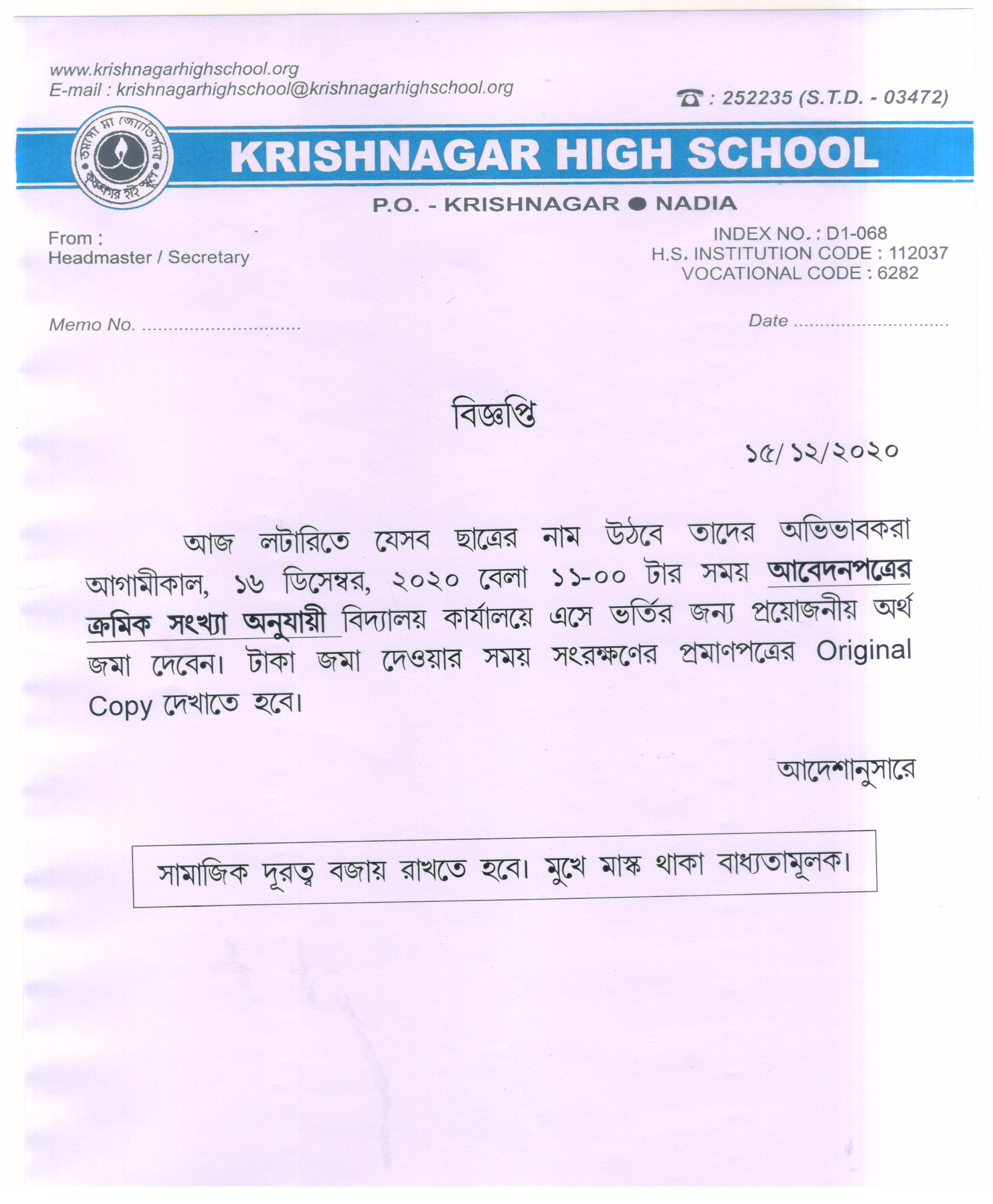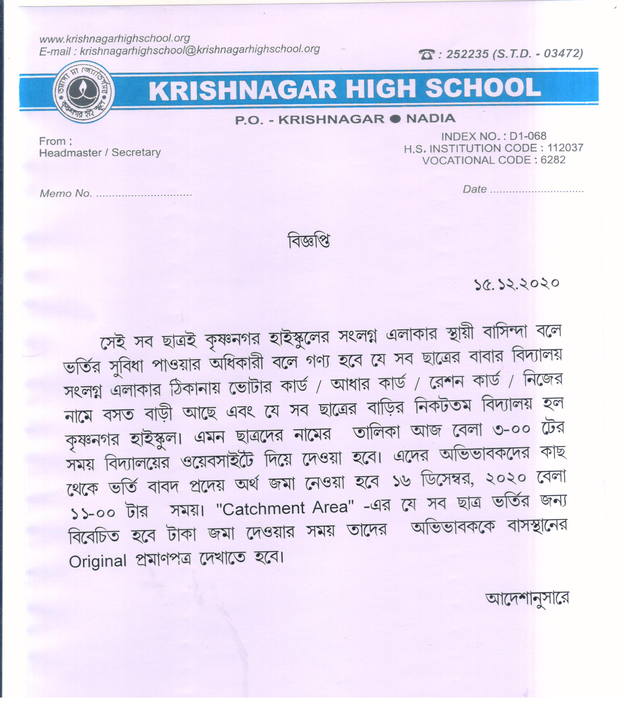 | 84 | 12/15/2020 | ADMISSION TO CLASS V 2021 (CATCHMENT) |