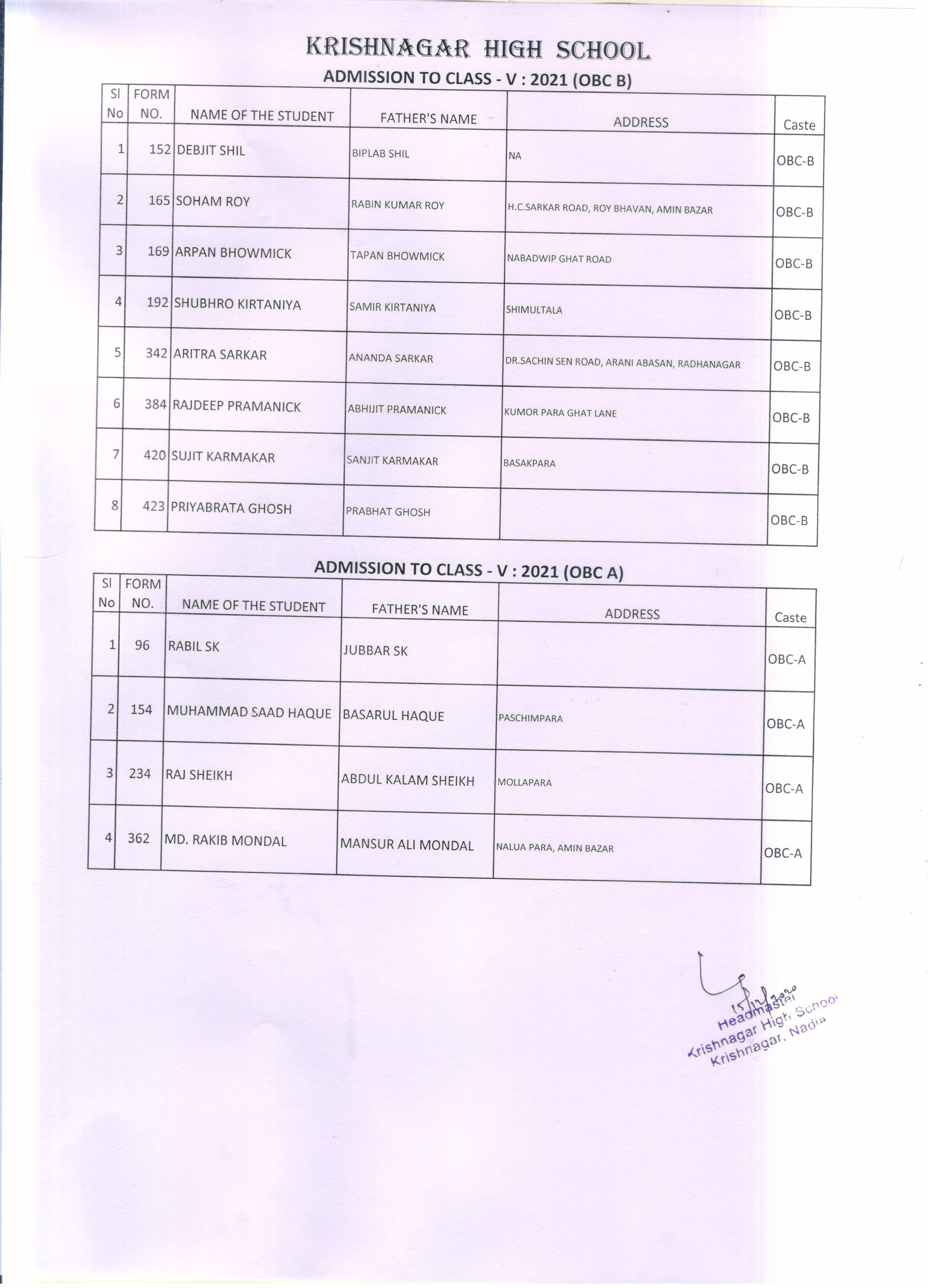 | 85 | 12/15/2020 | ADMISSION TO CLASS V 2021 (OBC A & B) |