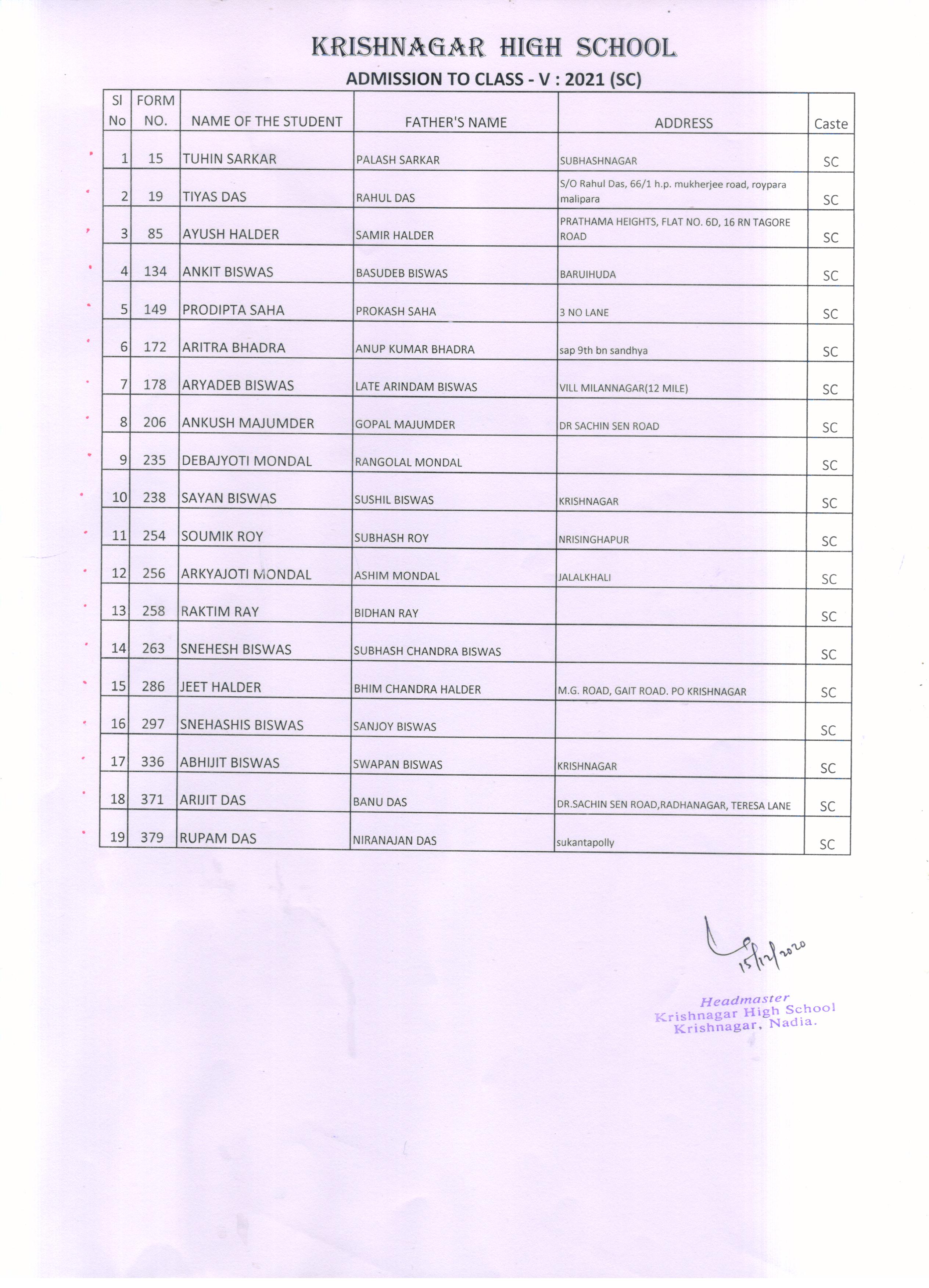 | 86 | 12/15/2020 | ADMISSION TO CLASS V 2021 (SC) |