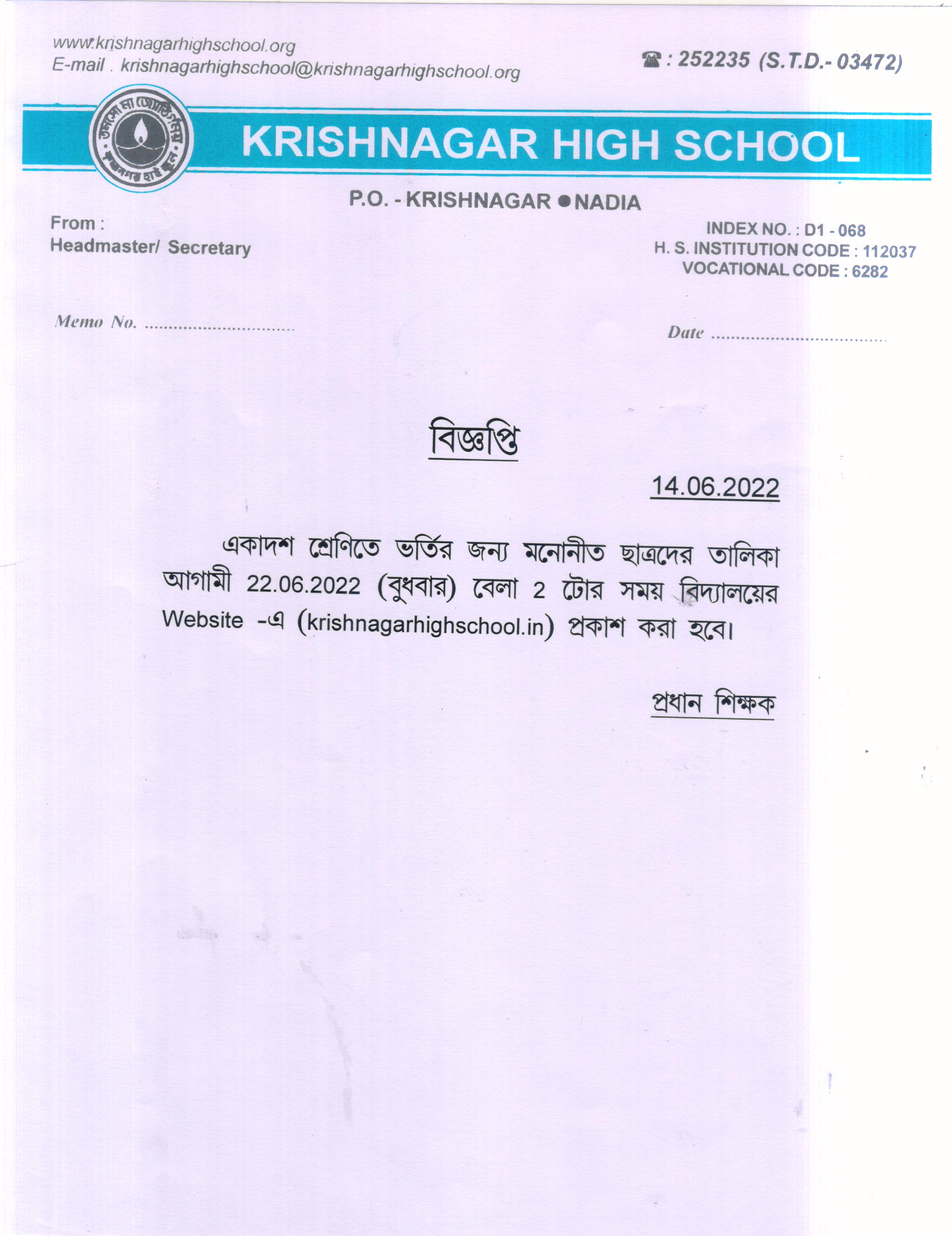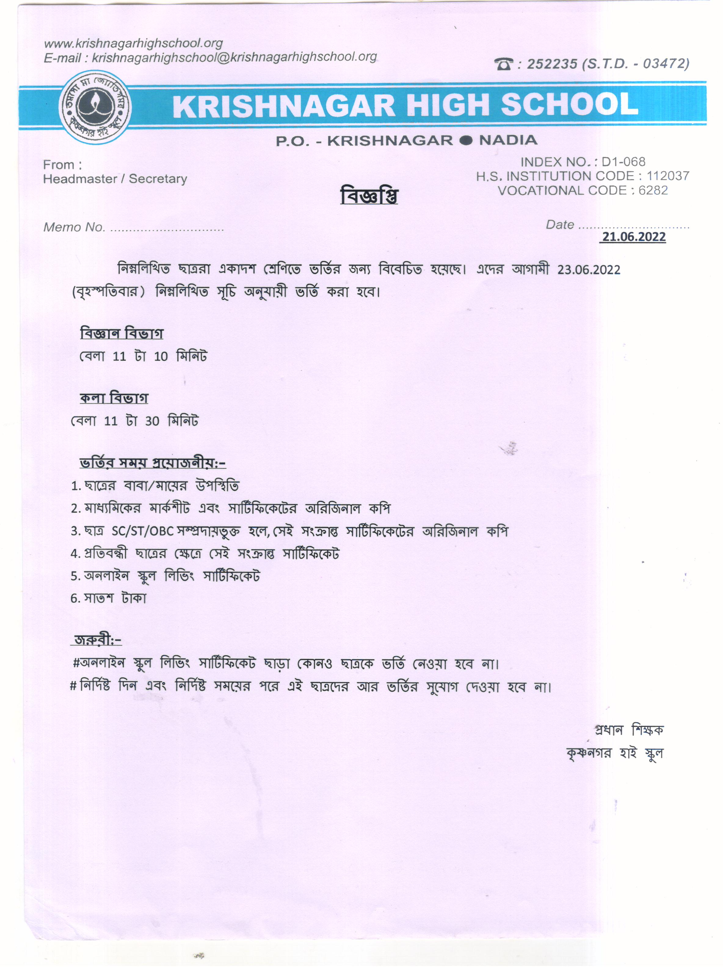 | 48 | 06/21/2022 | Notice for Admission to Class XI 2022  |