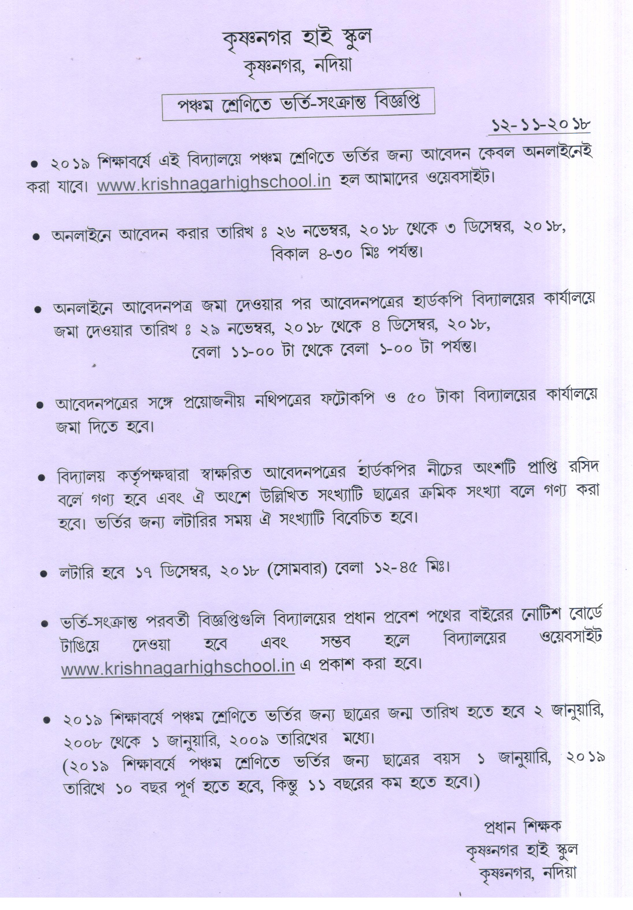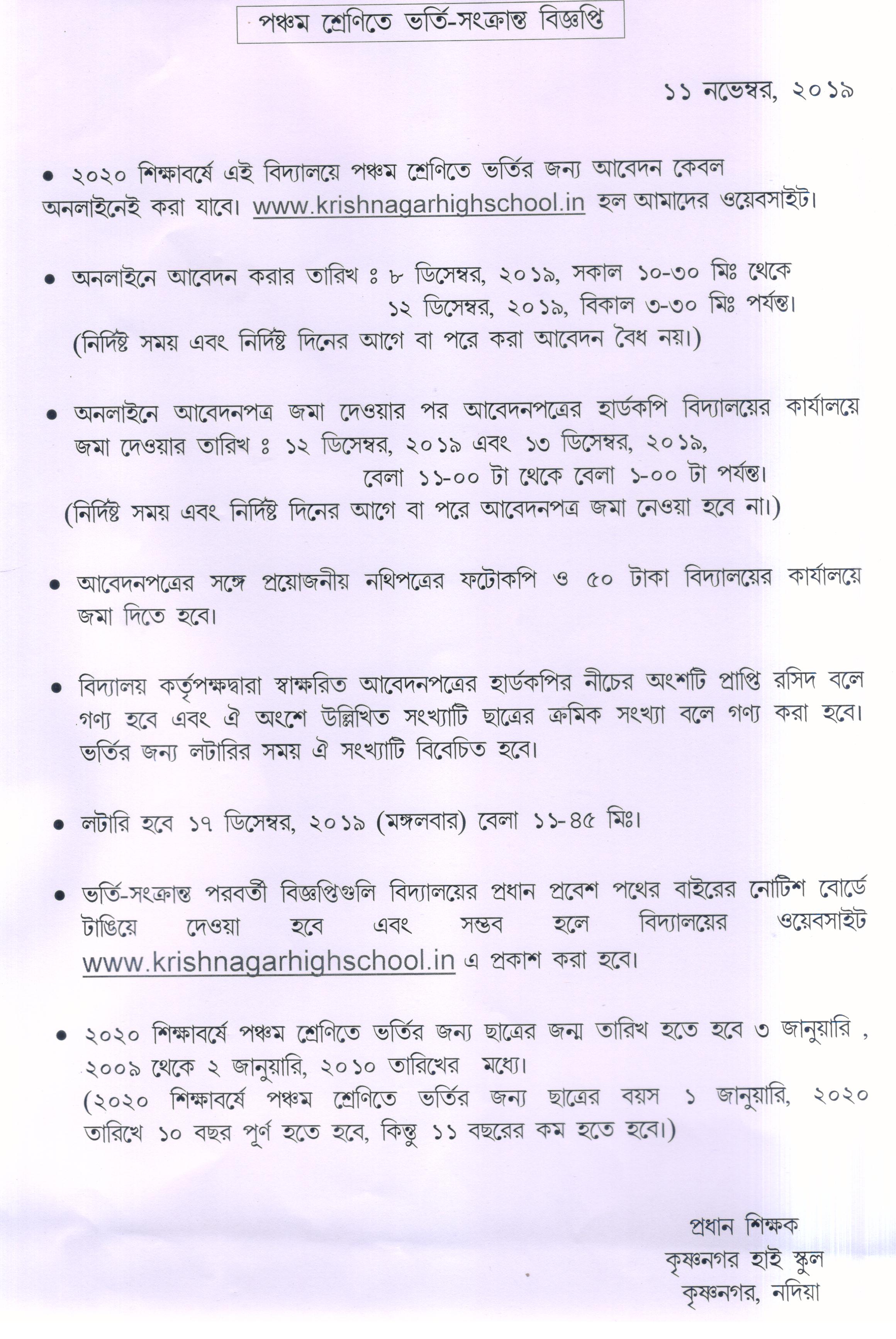 | 115 | 11/11/2019 | Admission Notice (For Class V) |