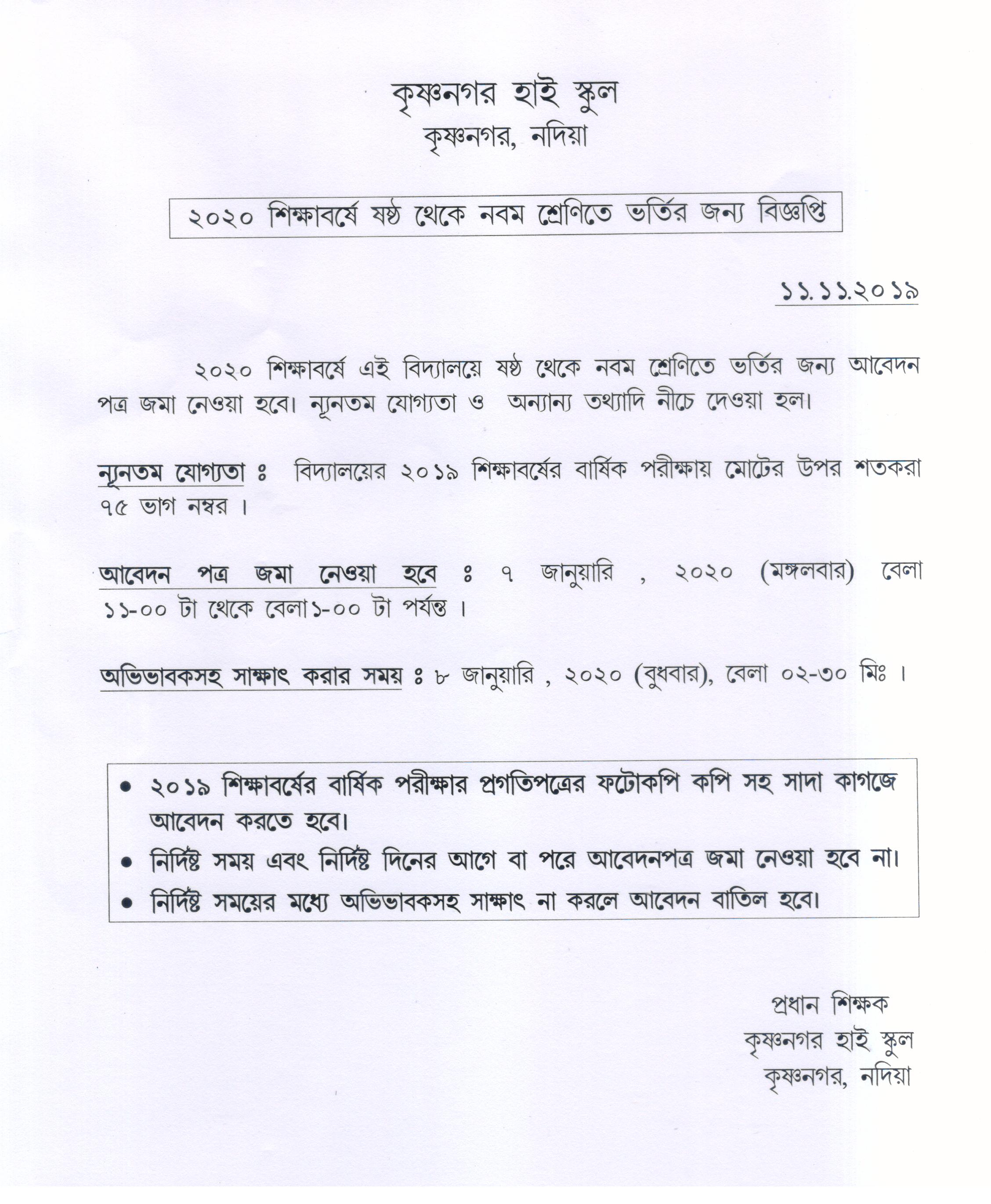 | 114 | 11/11/2019 | Admission Notice (For Class VI to IX) |