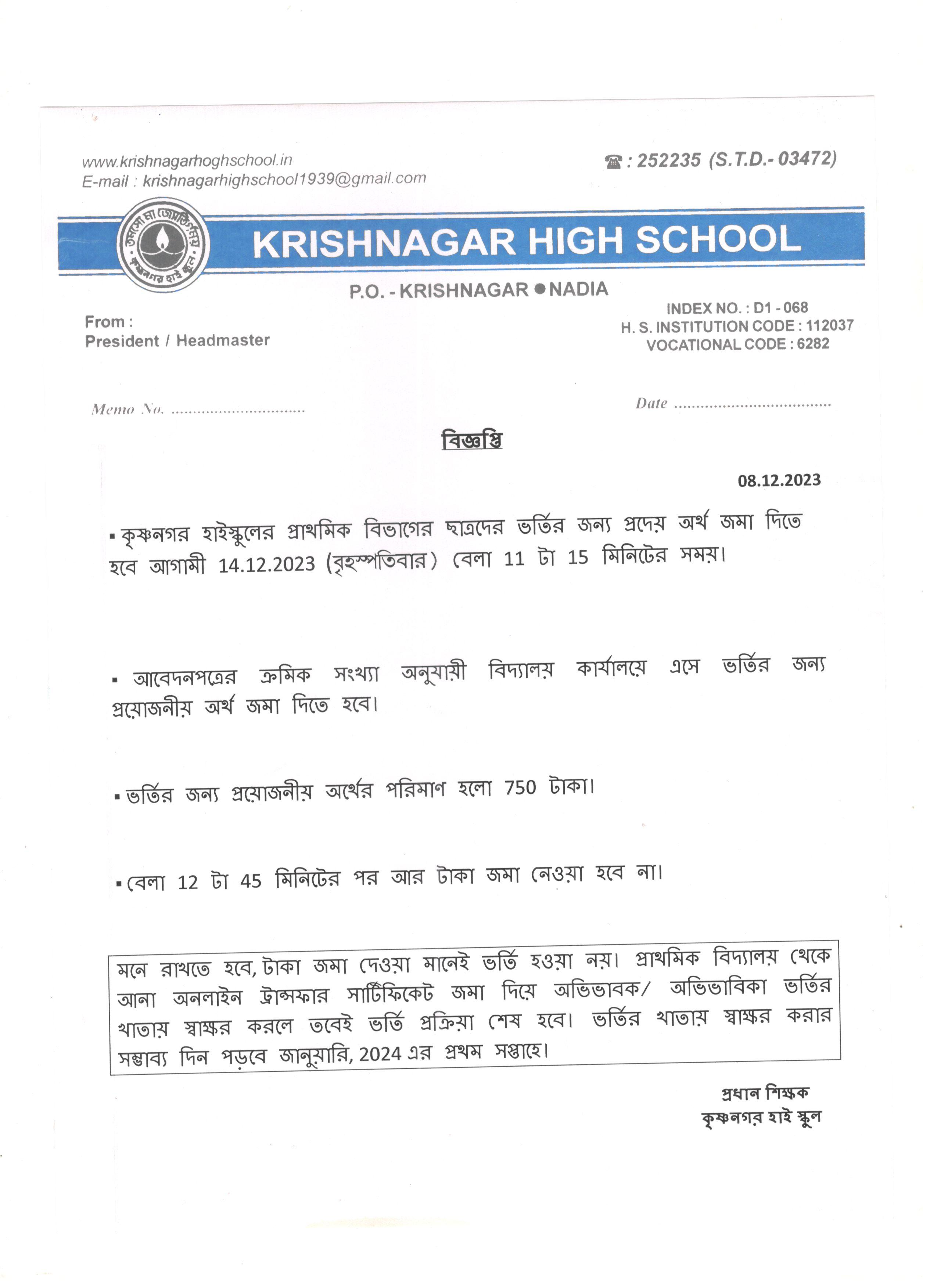| 25 | 12/09/2023 | Admission notice for KHS Primary |