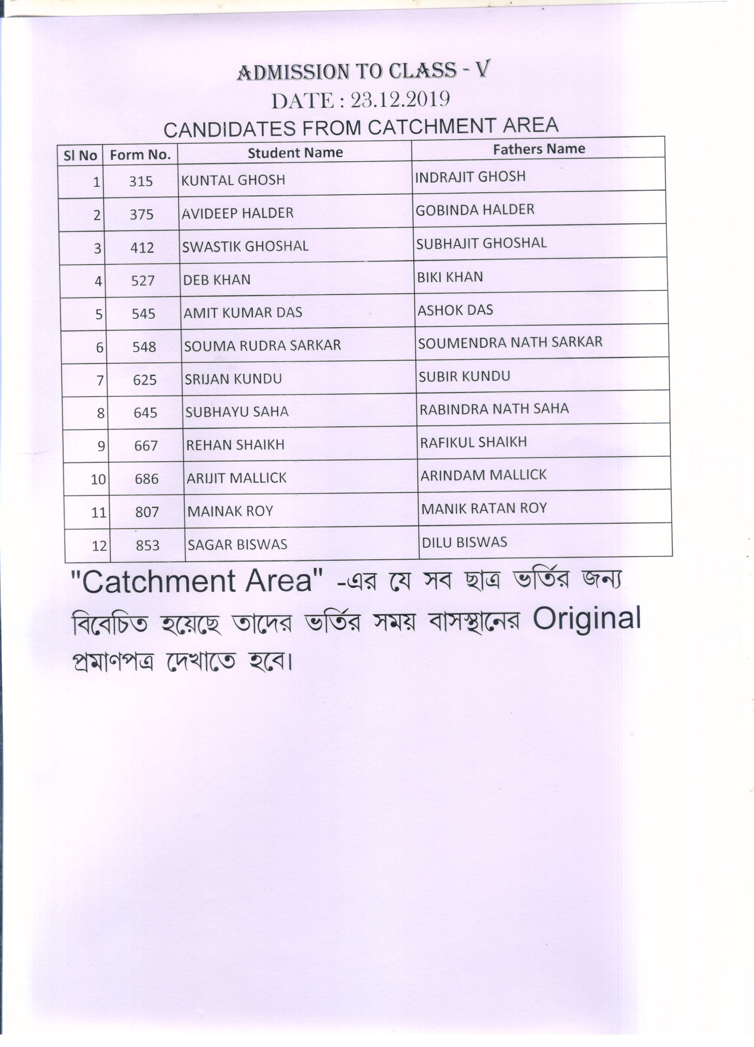 | 109 | 12/23/2019 | ADMISION LIST FOR CATCHMENT AREA |