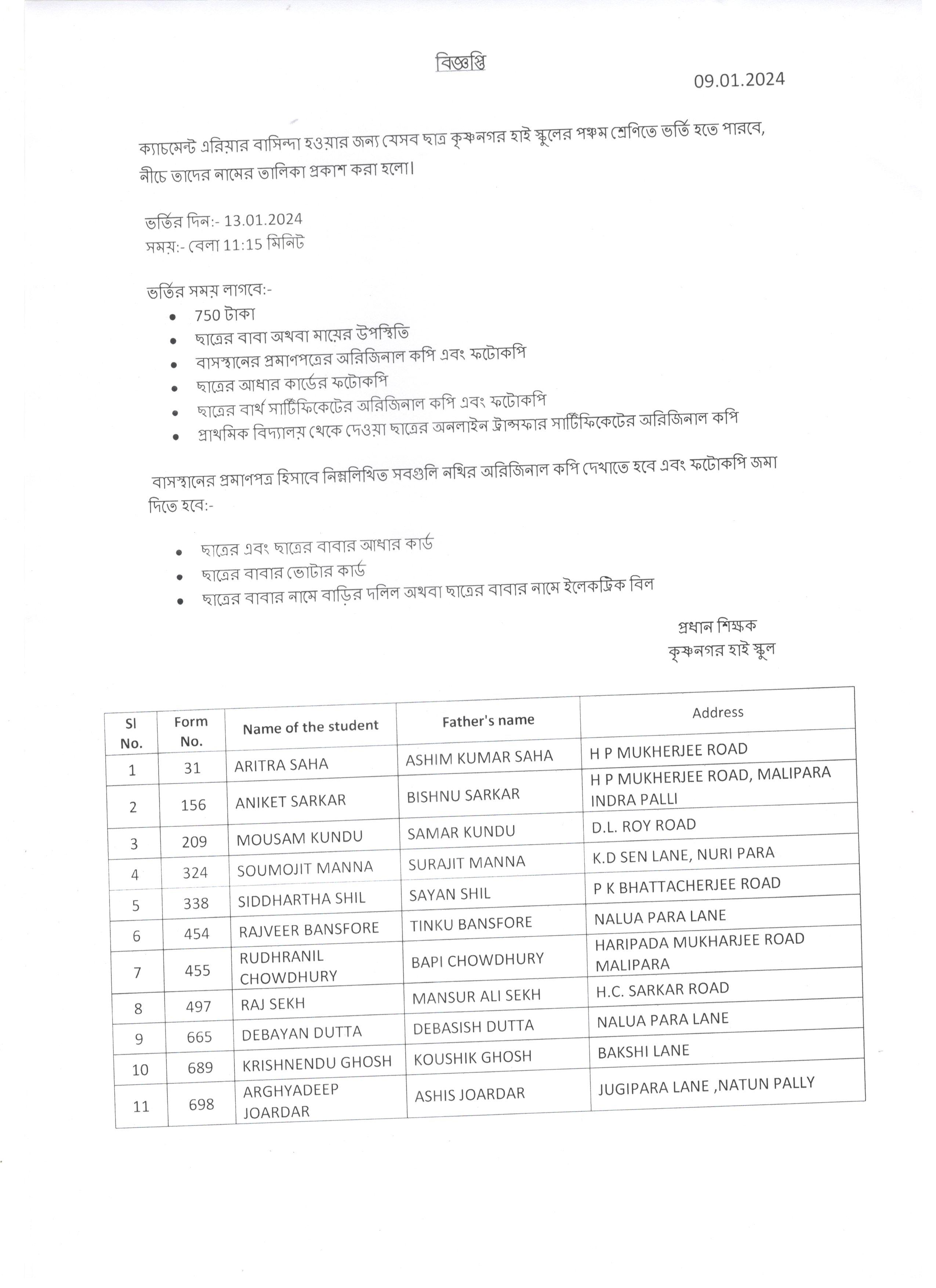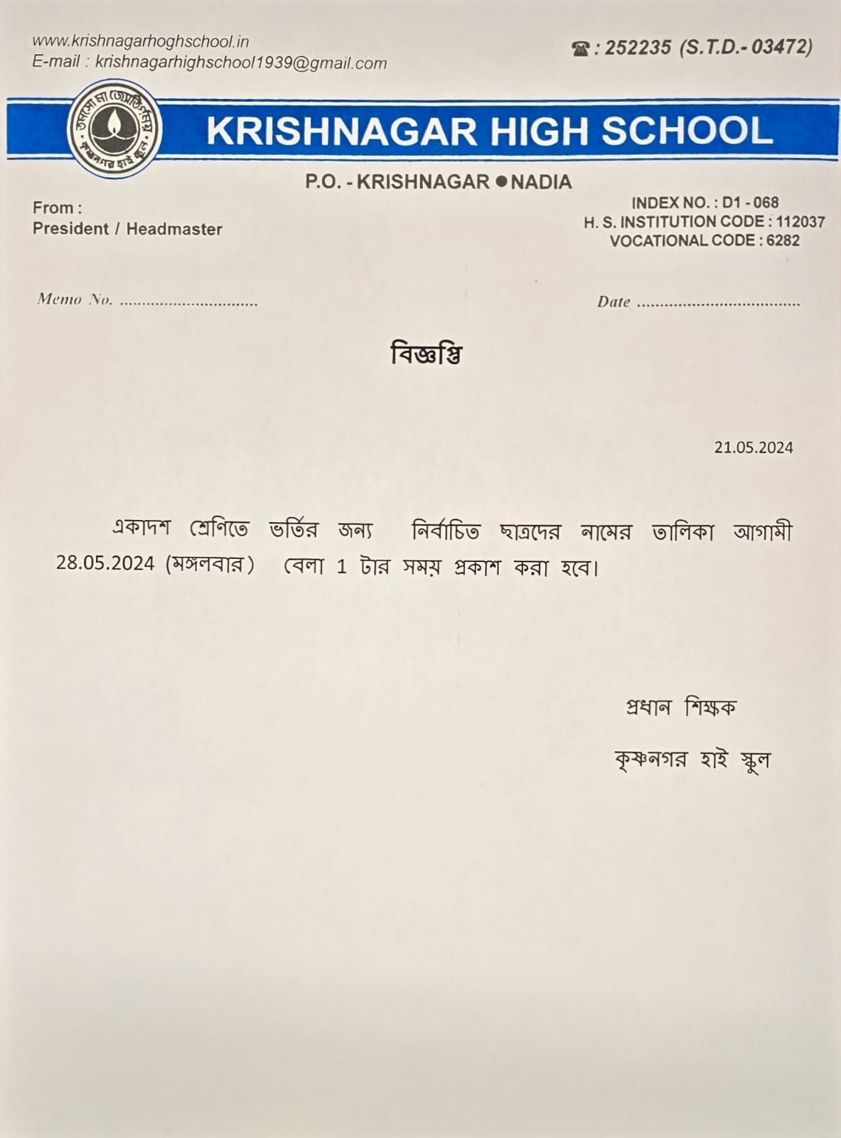 | 16 | 05/28/2024 | Admission to Class XI : List |