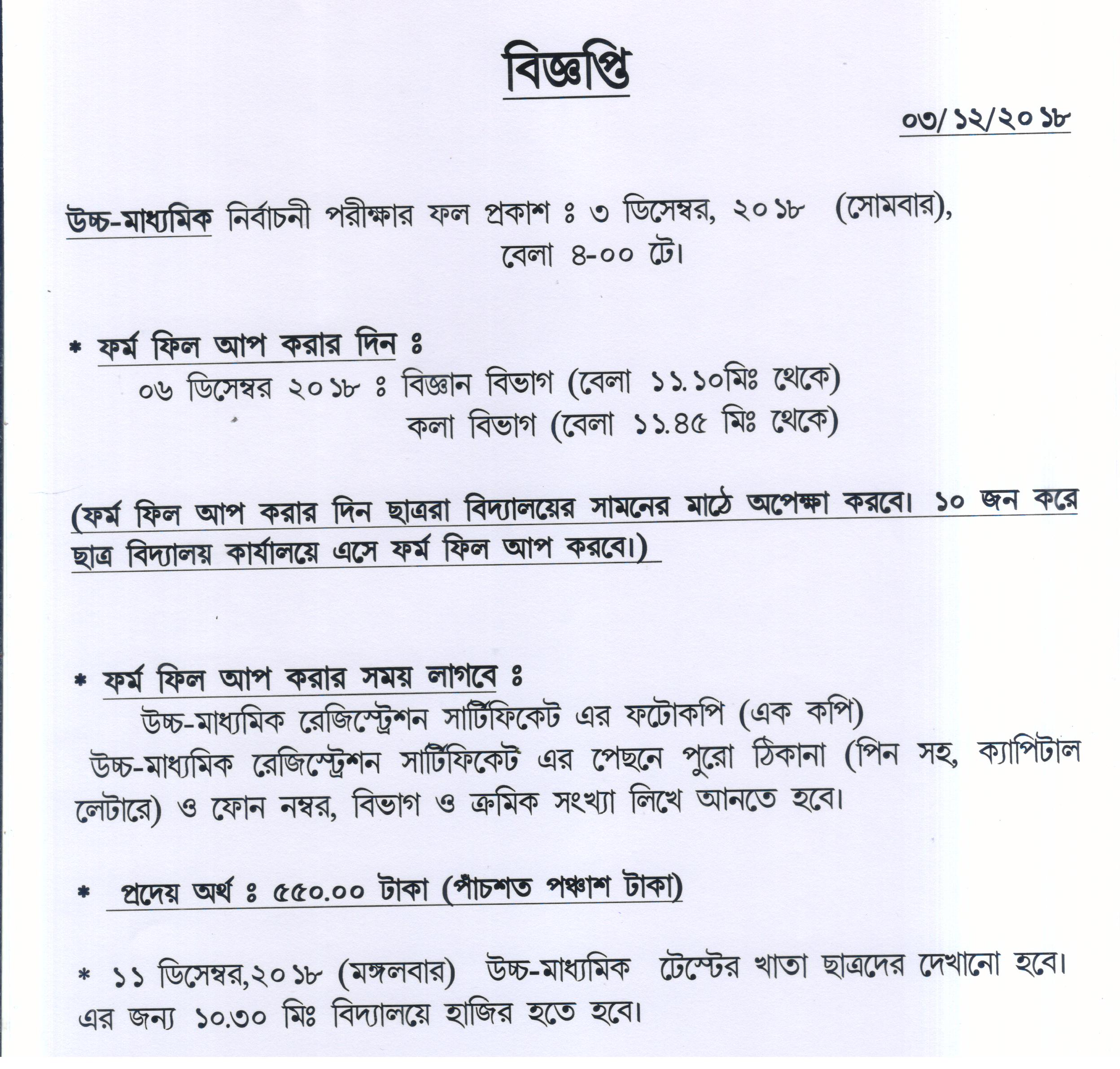 | 127 | 12/03/2018 | H.S. ENROLLMENT FORM FILLUP - 2019 |