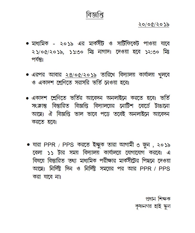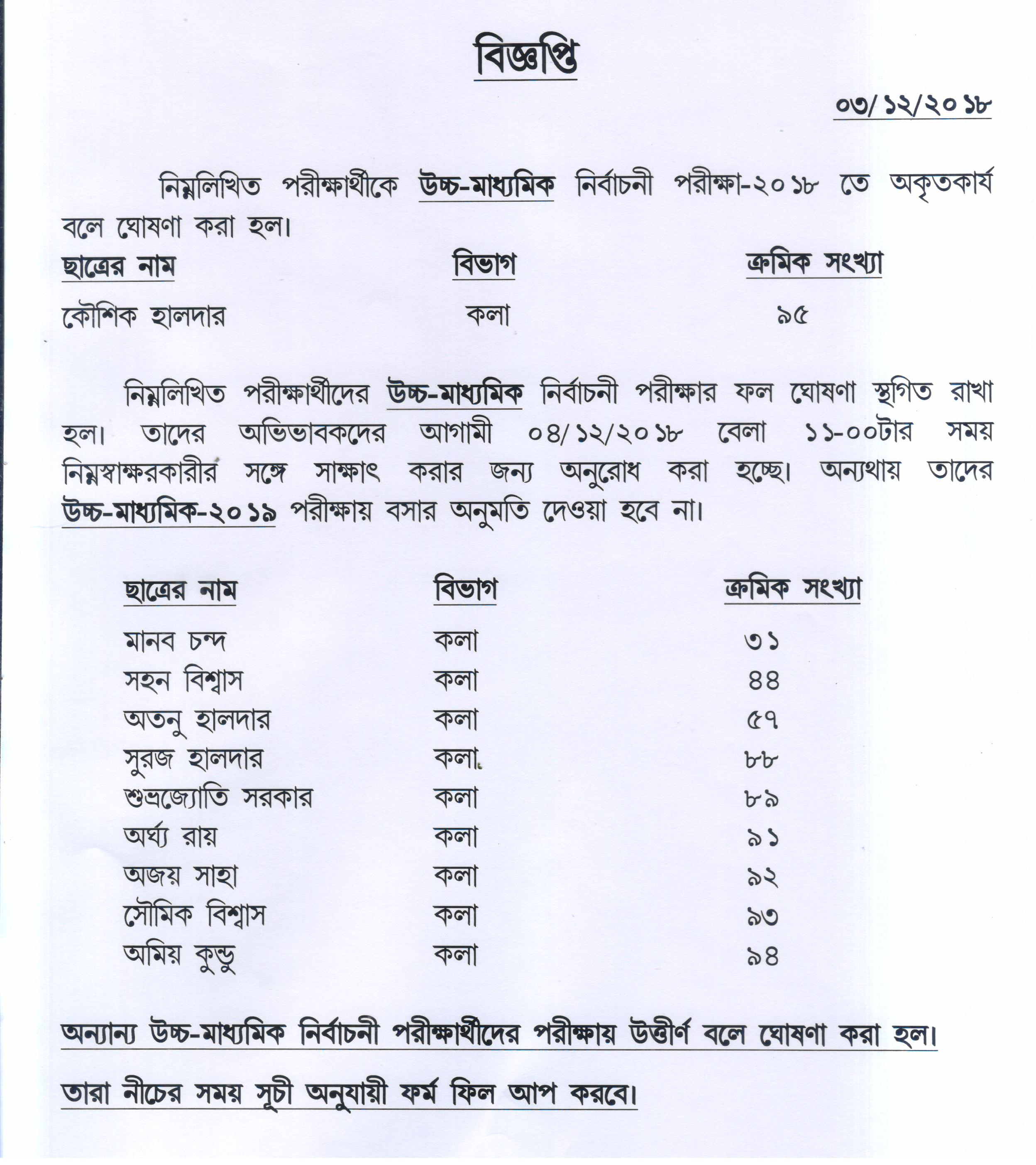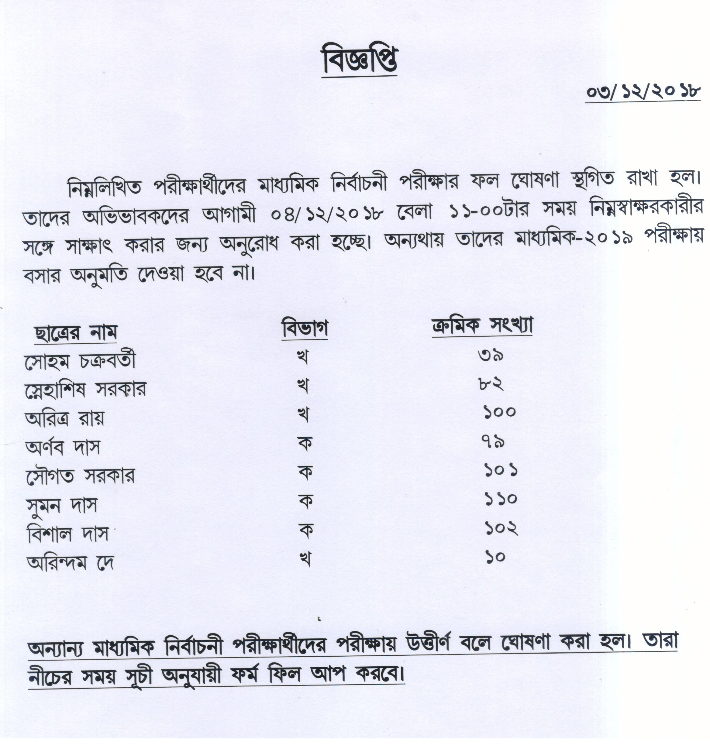 | 123 | 12/27/2018 | Revised Section & Roll No. for the students of Class IX in 2019 |
