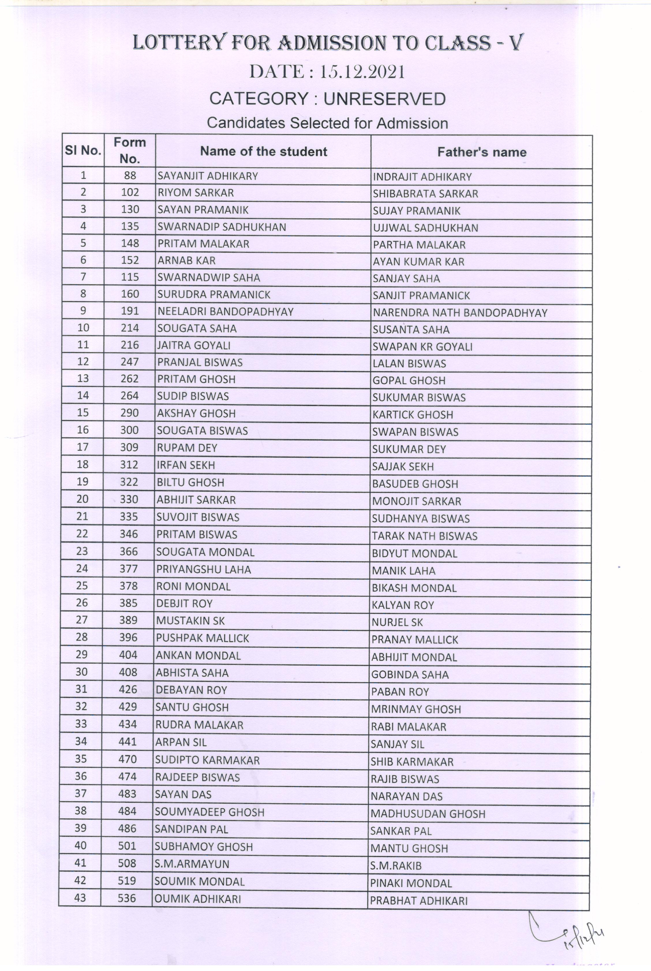 | 10 | 12/16/2024 | LIST OF STUDENTS SELECTED THROUGH LOTTERY FOR ADMISSION TO CLASS V |