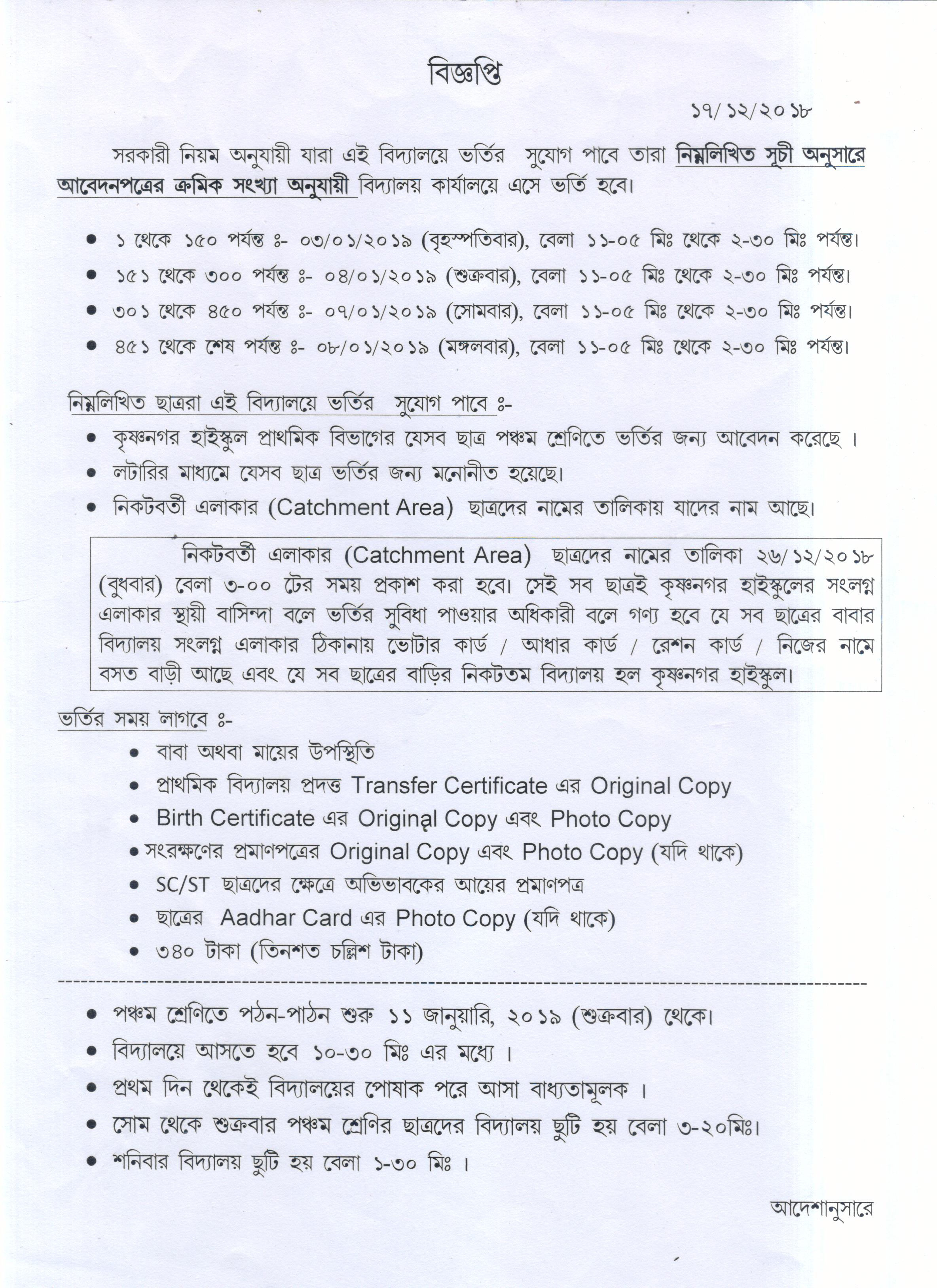 | 134 | 11/13/2018 | ADMISSION TO CLASS V IN THE ACADEMIC SESSION 2019 |