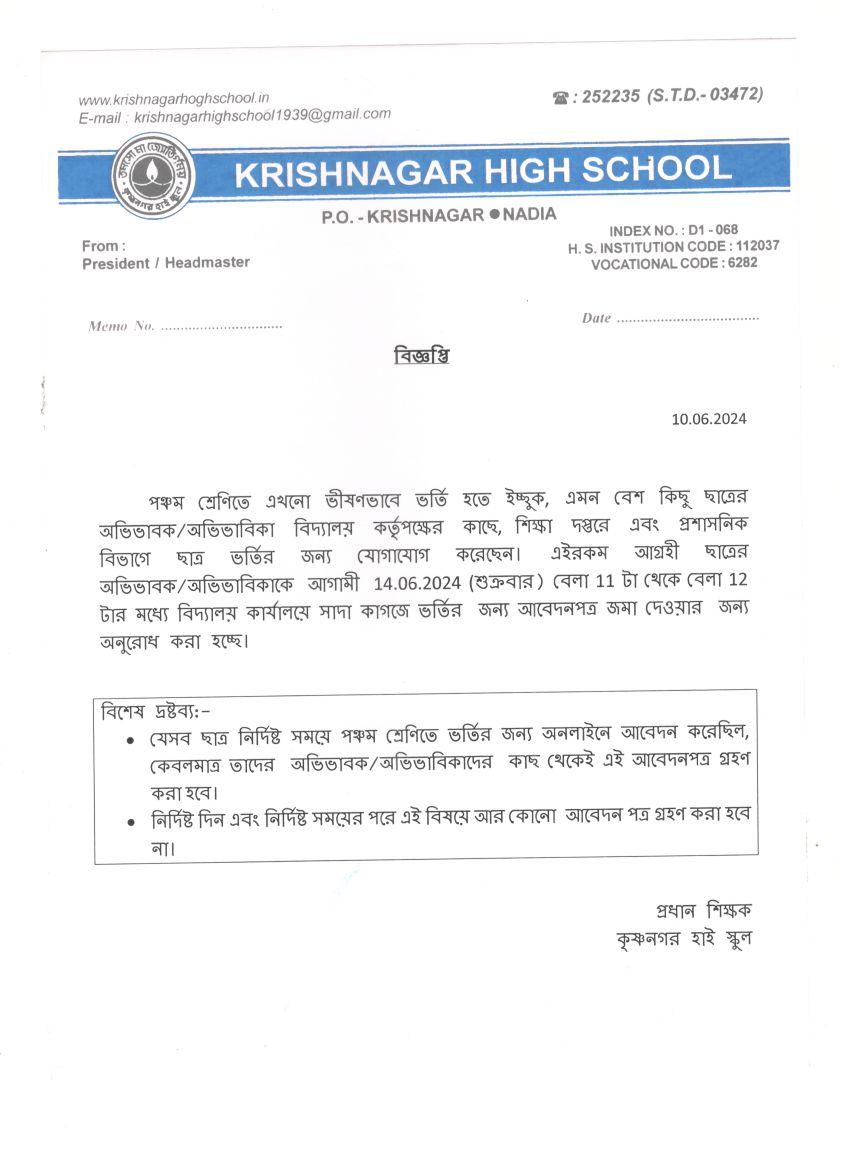 | 15 | 06/10/2024 | Notice for Admission to class V  |