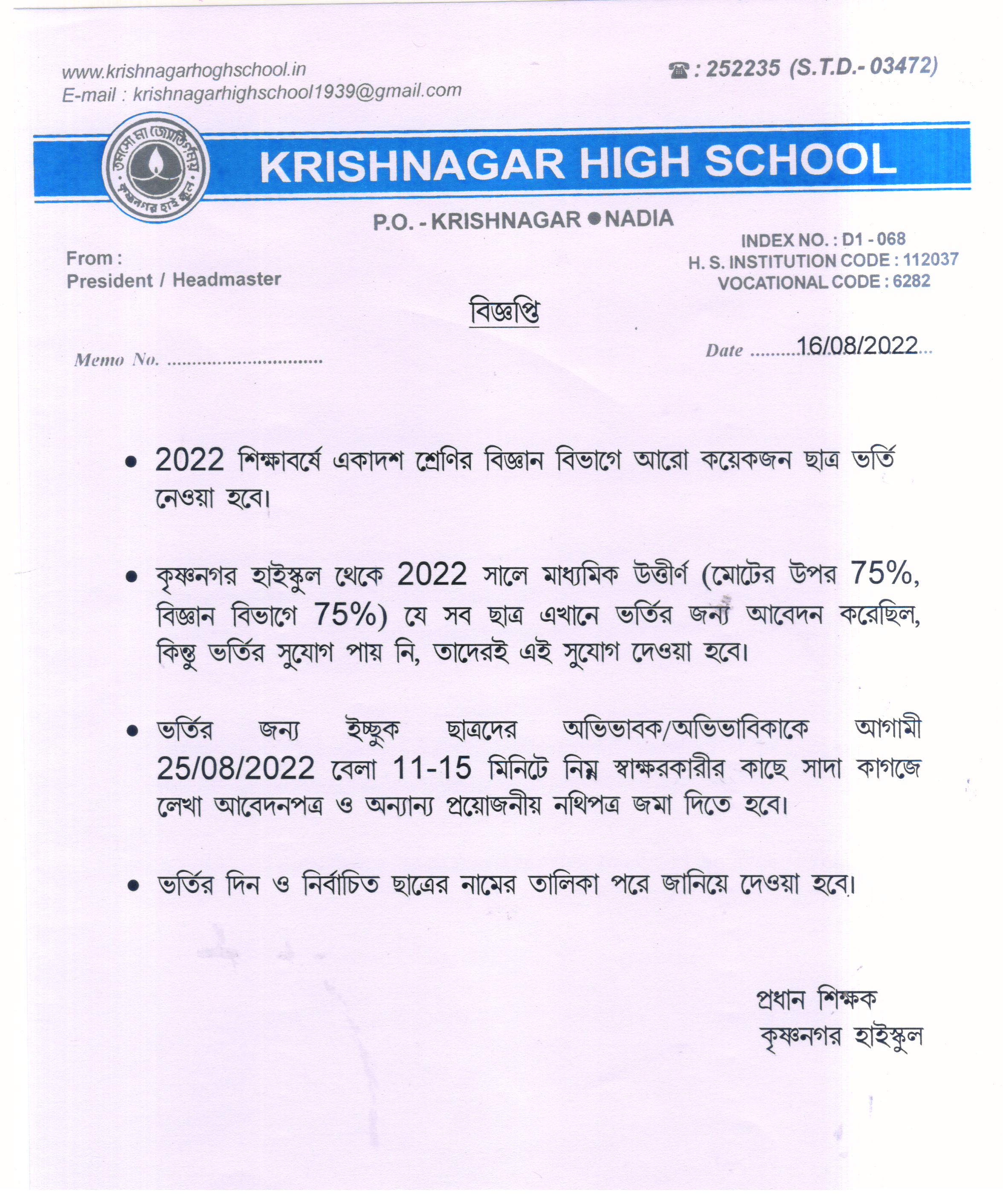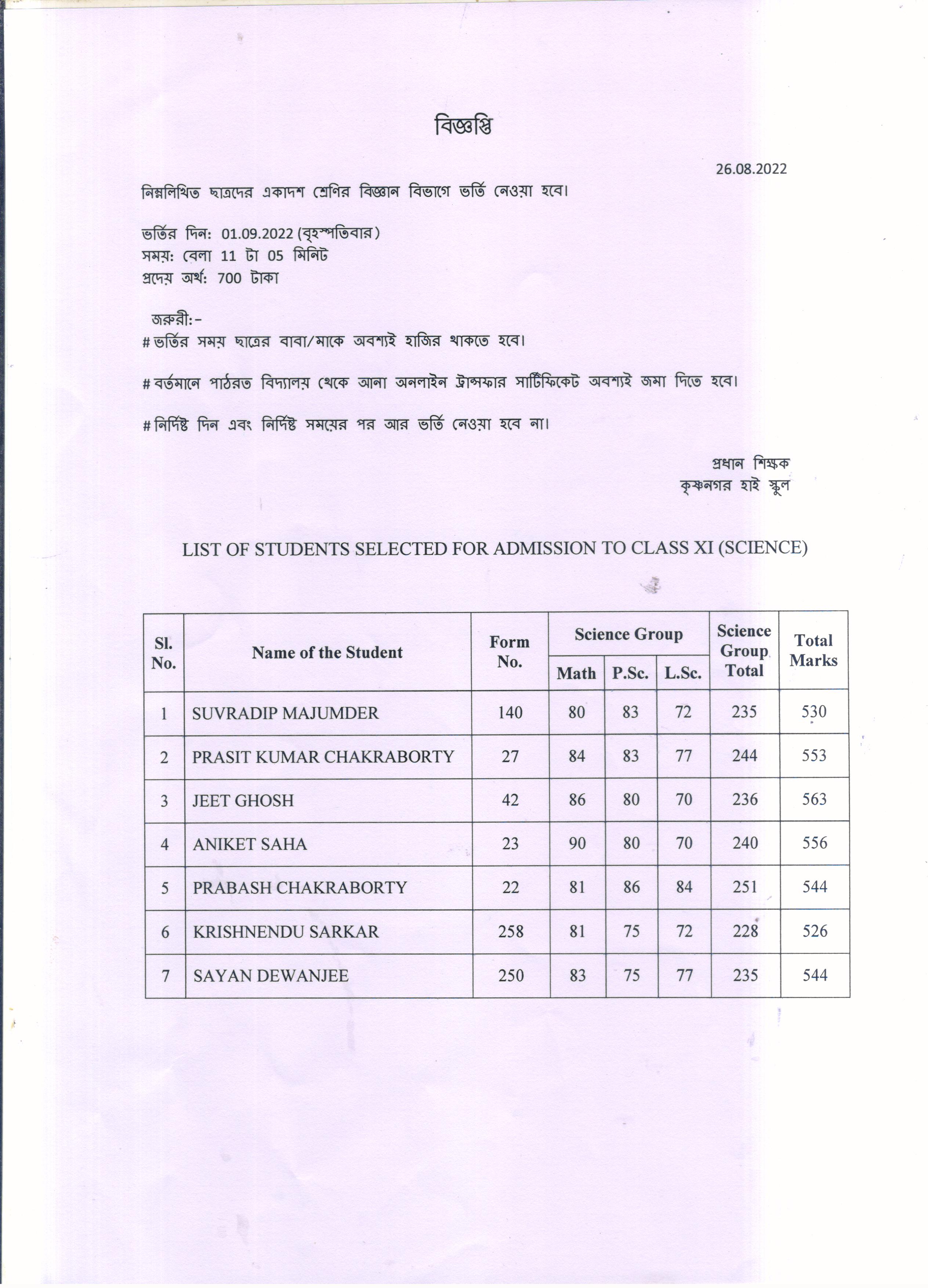 | 41 | 08/26/2022 | Admission in Class XI Science |