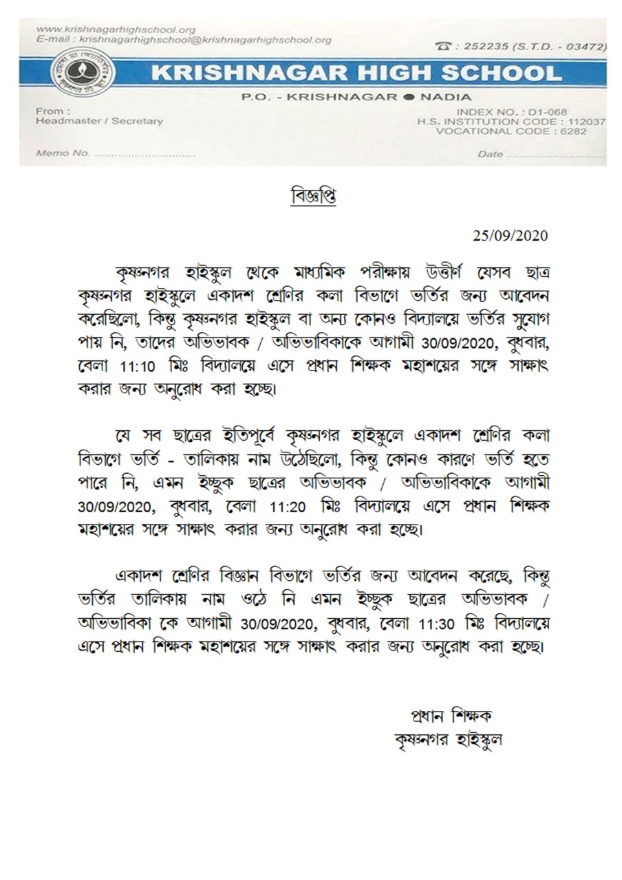 | 90 | 09/25/2020 | Admission to Class XI (25 Sept) |